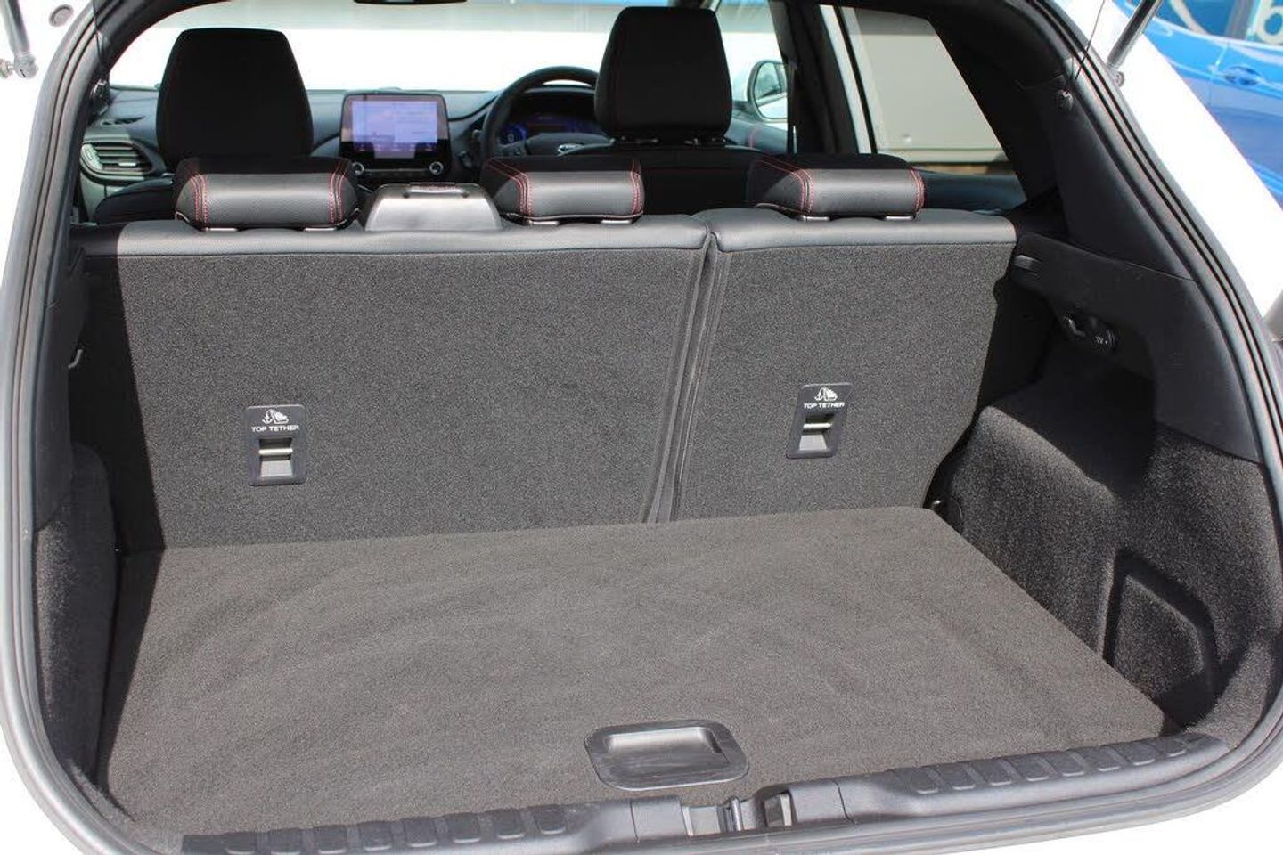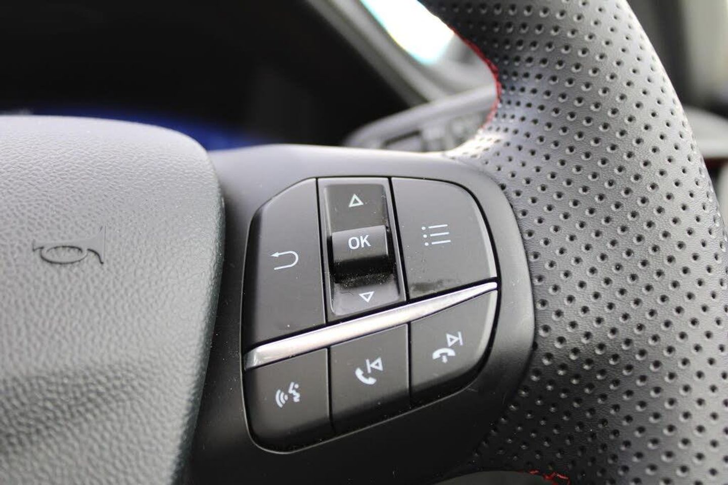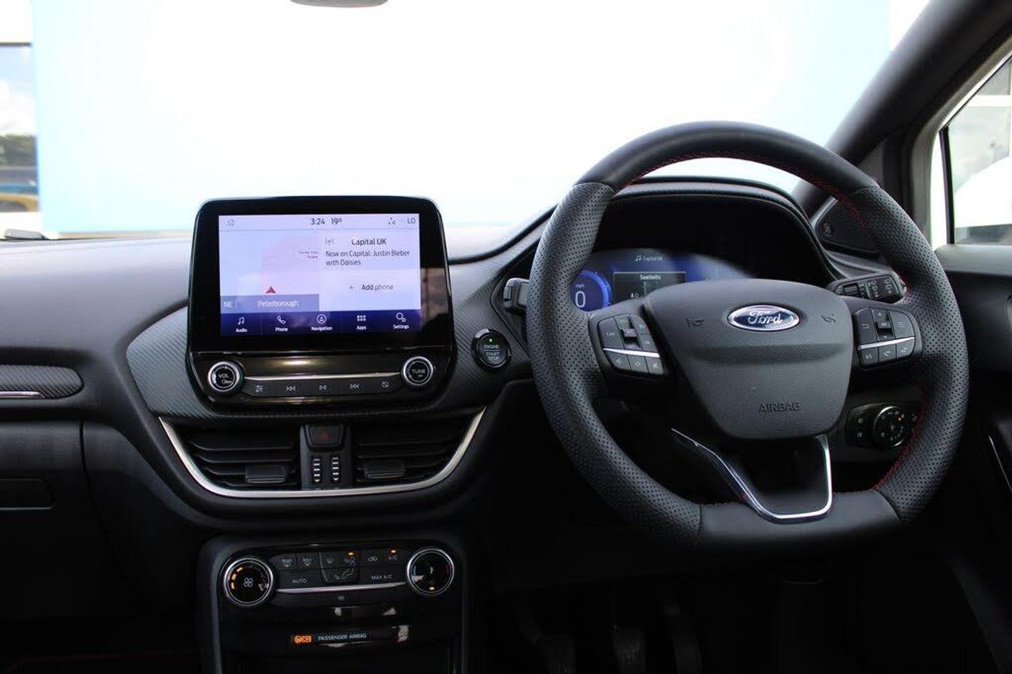 Driver impairment monitor, Emergency call service, Ford easy fuel, Full digital 12.3" instrument cluster, Lane keeping aid with lane departure warning, Power assist steering, Power start button, Rear parking sensor, Selectable drive modes(Normal, Eco, Sport, Slippery and Trail), Speed sign recognition, Automatic headlights with auto high beam, Automatic rain sensing wipers, Front fog lamps, LED daytime running lights, LED rear lamps, Power foldable heated door mirrors with puddle lamps, Privacy glass to side rear windows and tailgate glass, Quickclear heated windscreen, Rear side wing doors, Rear wiper, ST-Line body styling kit with unique grille, Third brake light, 3 seat bench in 2nd row, Centre console with armrest and stowage, Ford megabox extended bootspace, Front and rear head restraints, Front floor mats, Manual 4 way driver seat adjust with lumbar adjustment, Manual 4 way passenger seat with lumbar seat adjustment, Sensico partial premium upholstery, Single front passenger seat, ST-Line flat bottomed sensico leather steering wheel with leather handbrake and aluminium gear knob, Wireless charging pad with electronic air temperature control (EATC), Thatcham alarm