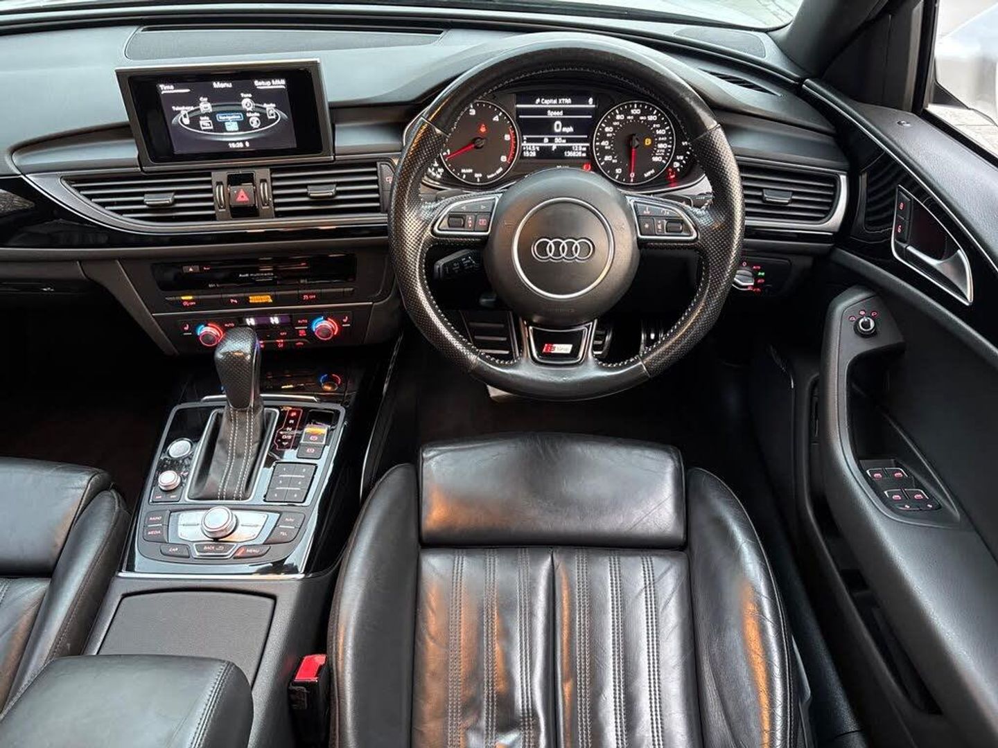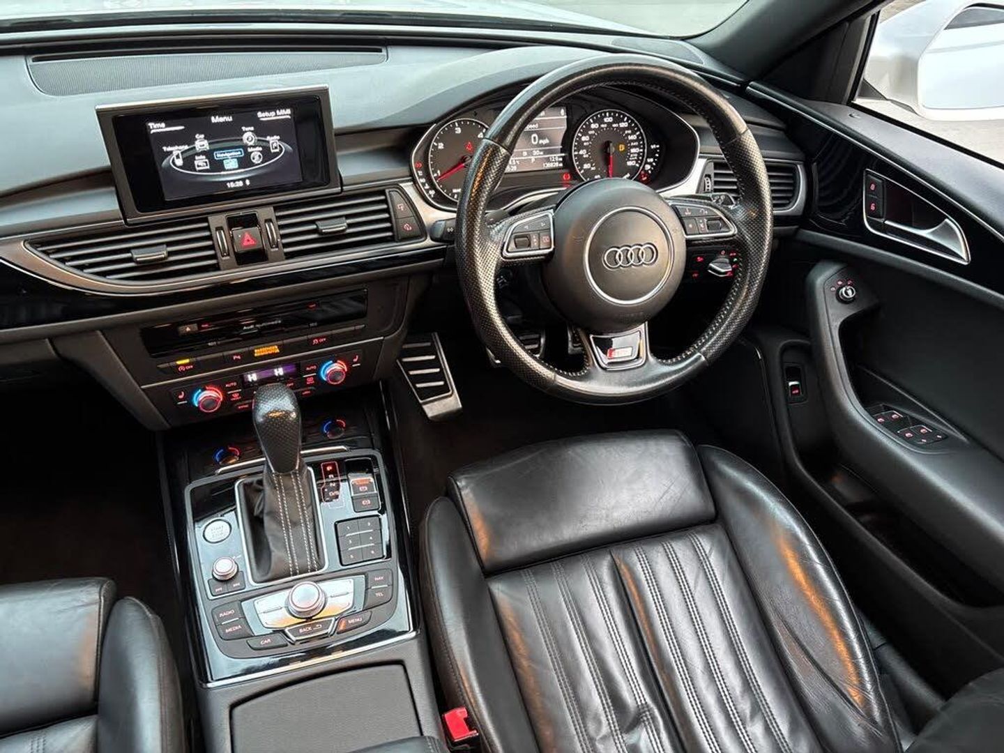 12V Power Socket, 12V Power Socket - Rear Centre Console, 20in Alloy Wheels - 5-Arm Rotor Design Titanium Look, 6.5in Display Screen, ABS - Anti-Lock Braking System, AMI - Audi Music Interface, AUX-IN Socket, Acoustic Windscreen, Airbags - Curtain, Airbags - Driver, Airbags - Front Passenger, Airbags - Front Side System, All-LED Headlights with High-Beam Assist, Amplifier - 12-Channel, Amplifier - 180 Watt, Anti Theft Locking Wheel Bolts, Anti-Theft Alarm, Audi Drive Select, Audi Hill Hold Assist, Audi Parking System Plus - Front, Audi Parking System Plus - Rear, Audio Output - 600 Watts, AudioPilot for Noise Compensating Volume Adjustment, Auto-Dimming Rear-View Mirror, Automatic Wipers with Rain Sensor, BOSE Surround Sound System, Black Styling Package, Body Coloured Door Mirrors, Climate Control - Electronic Deluxe 4-Zone, Cloth Headlining in Black, Cruise Control, DAB Digital Radio, Door Mirrors - Electrically Adjustable and Heated, Door Sill Trims with S Line Logo, Double Cargo Floor, Drivers Information System - DIS, Dynamic Route Guidance, ESP - Electronic Stability Programme, Electric Windows - Front and Rear, Electrically Adjustable 4-Way Lumbar Support, Electromechanical Parking Brake, Electromechanical Power Steering, First Aid Kit, Front Centre Armrest - Adjustable, Front Passenger Airbag Deactivation Switch, Front and Rear Floor Mats, Gear Knob - Perforated Leather Black, Head Restraints - Front Adjustable, Headlight Washers, Headlights - Automatic Adjustment, Headlights - High-Beam Assist, Headlights - Light Sensor, ISOFIX Child Seat Mounting for Front Passenger, ISOFIX Child Seat Preparation for Rear Seats with Top Tether, Inlays - Piano Finish - Black, Keyless Go, LED Daytime Running Lights, LED Rear Lights, Luggage Compartment - Dirt Resistant Tray, Luggage Compartment - Hooks, Luggage Compartment - Lashing Points and Side Restraining Straps, Luggage Compartment - Rail Fixing System, Luggage Compartment System, MMI Navigation - SD Card Based, MMI Radio Plus, Manual Height Adjustment for Front Seats, Mobile Telephone Preparation - Bluetooth Interface, Non-Smoking Package, Platinum Grey Front Spoiler Lip and Diffuser Insert, Pollen Filter, Power Operated Tailgate, Privacy Glass, Radiator Grille - Matt Black, Radiator Grille and Frame and Struts - High-Gloss Black, Remote Central Locking, Roof Rails - Matt Black, S Line Badges on the Front Wings, SDHC Card Reader x2, Seats - Sports - S Line, Side Ventilation Grille - S Line, Space Saver Spare Wheel, Speakers x14, Split-Folding Rear Seats, Spoiler - Body Coloured, Sport Suspension, Steering Wheel - 3-Spoke Leather - Multi-function - Sports - Shift Paddles, Steering Wheel - 3-Spoke Sports, Steering Wheel - Gear-Shift Paddles, Steering Wheel - Height and Reach Adjustable, Steering Wheel - Multi-function, Subwoofer, Surround Sound 5.1 Reproduction, Tailgate - Aluminium Effect Trim, Towbar Preparation, Tyre Pressure Monitoring System, Voice Control, Warning Triangle, Heated Front Seats, Valcona Leather - S Line Sports Seats - Black, S Line Suspension, 20in Alloy Wheels - 5-Twin-Spoke Design, 20in Alloy Wheels - 5-Twin-Spoke Design in Matt Titanium Look - Gloss Turned Finish