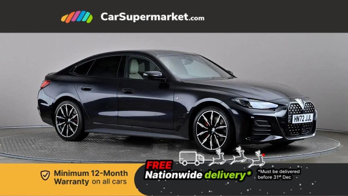 Active guard plus,Attentiveness assist,Auto start-stop,BMW ConnectedDrive online services,BMW iDrive controller on centre console,BMW Live Cockpit Professional Nav with 12.3" instrument display + 10.25" display, Intelligent Voice Assist, BMW OS 7, HDD, 2USB, 4G LTE connect,BMW service history,BMW Teleservices,Brake pad wear indicator in front and rear,Check Control warning system for monitoring of lights and door/luggage compartment open warning,Condition based service,Cruise control with speed limit function,Electric bootlid,Electric power steering with Servotronic steering optimised at all speed ranges,Gearshift time display in manual mode,Instrument cluster with speedometer with mph readout, tachometer, fuel gauge and oil temperature gauge,Integrated owners handbook,Oil sensor for level and grade, warning by check control system,On board computer - average speed, fuel consumption, outside temp display with acoustic warning, clock/date, service interval, odometer/trip meter,Optimum shift indicator,Shifting point display,Variable sport steering,48V Mild hybrid technology,8 speed automatic steptronic transmission with gearshift paddles,Diesel particulate filter,Double joint spring strut front axle,Drive performance control - ECO PRO, comfort and sport modes,Incorrect fuelling protection,Low centre of gravity,Stroke dependent dampers,2x USB Type C ports in front centre console for charging and data transfer,DAB tuner,Electronic service booklet,3rd brake light,Acoustic glazing,Automatic headlight beam throw control with load dependent regulating reaction, dynamic compensation of braking dive and acceleration squat,Automatic windscreen wipers and automatic headlight,Automatically dimming electrochromatic rear view mirror,BMW emblem on engine compartment lid and tailgate,Body colour fuel filler flap,Body colour roof fin,Brushed aluminium inserts in the front door sill finishers with BMW designation,Door sill strips,Dynamic brake lights,Electric windows - front and rear, with open/close fingertip control, anti trap facility and comfort closing function all round,Exterior mirrors - electrically folding with anti-dazzle,Fading support,Follow me home headlights,Front and rear bumper system,Front apron plastic in body colour,Green tinted heat protection glazing,High gloss shadow line exterior trim,Illuminated bow type door handles in body colour drivers side with door lock,Interior rear view electrochromatic mirror with automatic anti dazzle function,LED daytime running lights,LED front fog lights,LED front indicators,Licence plate panel integrated into front bumper and tailgate,Lightweight engineering,M designation on front side panels, left and right,Model designation on right side of tailgate,One piece front bumper cover including towing eye cover in body colour,Preparation for high beam assistant,Rear side wing doors,Rear wiper,Reversing light,Side frame decorative moulding black matt,Two part LED tailights in L-shape with components in smoked glass, brake light, LED turn indicator and rear fog light,Visible exhaust tailpipe finisher,Visible VIN plate,Welcome lights in interior and door handle area,Widened track and increased camber values for max transverse dynamics, agility and steering precision,Window recess cover black high gloss,Windscreen wipers with integrated heated washing jets,12V power socket in front centre console,2 front cupholder in centre console with clamping elements and matt black inlay,3 rear headrests,3 seat bench in 2nd row,3 spoke M sport leather multifunction steering wheel,3 zone automatic air conditioning,4 pieces lashing eyelets in luggage compartment,40:20:40 split folding rear seat and rear centre armrest with two cupholders,Anthracite headlining,Armrest integrated in front and rear door trim + front centre console armrest,Battery in luggage compartment,BMW ID,Driver seat backrest width adjustment,Four grab handles integrated in roof lining,Front and rear door pockets,Front and rear reading lights,Front sport seats,Heated driver and front passenger seats,Height adjustable front headrests,Height adjustable mechanically and infinitely variable steering column,Illuminated armrest storage compartment,Illuminated glove compartment with separate small compartment,Make-up mirror lights,Single front passenger seat,Storage compartment in rear centre console,Sunvisors with illuminated vanity mirrors and ticket pocket,Toolkit located in luggage compartment,Vernasca leather upholstery,Ambient lighting pack - 4 Series,Connected professional pack - 4 Series,M sport exterior styling pack - 4 Series,3 point seatbelts on all seats,Battery safety cut-off,BMW emergency call,Brake energy regeneration,Braking pre-tensioning,Child proof locking system in rear door,Child seat ISOFIX attachment for the two outer rear seats,Coasting in idle in ECO PRO mode,Cornering brake control (CBC),Crash sensor activating of airbags, Unlocking doors, hazard warning lights, interior light