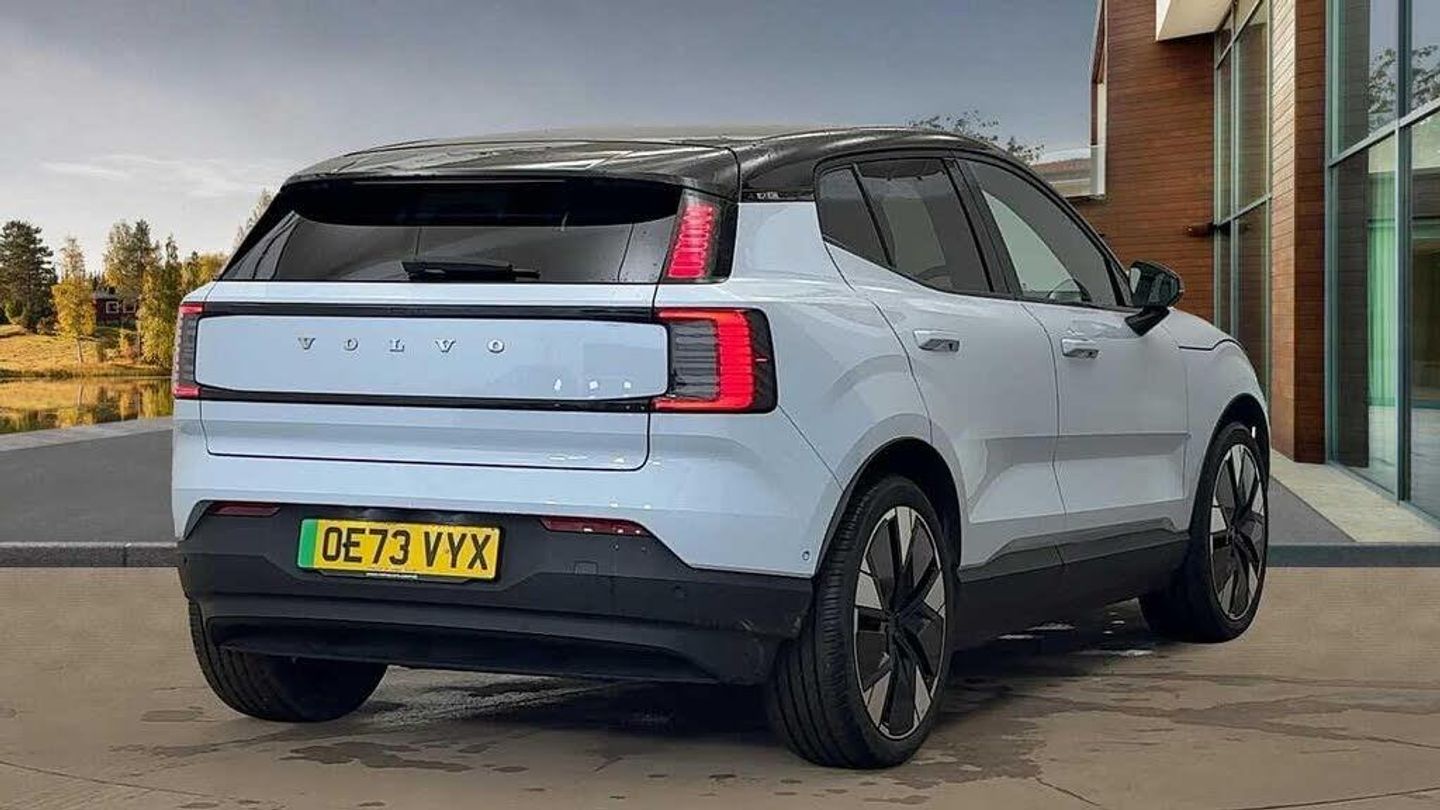 Cloud Blue Metallic Paint, Pixel Knit & Nordico upholstery, Harman Kardon Premium Sound, 20? 5-spoke glossy black diamond cut, Park assist. front and rear, 360° camera. 3D view, Wireless Apple CarPlay, Panoramic roof, Reserve online for £100, Personalised walkaround video available on request, Call Leicester on 01162758800, Rear LED lights, Heated steering wheel, Double lock, Passenger airbag cut-off switch, Alcohol lock software (not available in the UK), Adaptive cruise control, Child safety lock, Low speed autobrake. rear, Power 4-way lumbar support. driver, Roof top. high-gloss black, Road Sign Information, Lane Keeping Aid, Door mirror covers. high-gloss black, Driver airbag, Run-off Road Mitigation, Door opening alert, Harman Kardon Premium Sound, Ambience themes, LED illumination. load compartment, Air quality measurement and remote cabin air pre-cleaning, Dual-stage airbags. passenger, Fog lamps. rear, 5 seats, One pedal drive, Front and rear USB-C ports, Lane Departure Warning, 20? 5-spoke glossy black diamond cut, Digital key plus, ISOFIX child seat attachment, Pilot Assist, Post impact braking, Two-zone climate system, LED headlights, Power outlet. load compartment, Roof spoiler. high-gloss black, Sliding cupholders and storage, First-aid kit, Lane change assist, Cabin filter, Alarm, Summer tyres, Seat track position sensors. driver and passenger, Front Cross Traffic Alert, Shift-by-wire single speed transmission, 12.3-inch centre display, Traffic Jam Assist, Digital Audio Broadcasting (DAB+), Speed limiter, Hill Start Assist, Temporary mobility kit, Direct occupant sensing, All-wheel Drive (AWD), Power tailgate, Air quality system, Rear Cross Traffic Alert with Autobrake, 22kw On-Board Charger (OBC), LED headlights with active high beam, Auto-dimmed inner and door mirrors, Heated front seats, Air vent decor. blue, Wireless phone charging, Park assist. front and rear, Warning triangle, Heat pump, Door mirrors with ground lighting, 360° camera. 3D view, Flat-folding two-split rear seat, Power passenger seat, Hill Descent Control, Interior illumination. high level, Side impact protection, Key tag, Rear Collision Warning, Particle decor, Park Pilot Assist, 5G capability, Collision avoidance and mitigation, Vanity mirrors, Wireless Apple CarPlay, Tinted rear windows, Panoramic roof, Driver alert system, Power driver seat, Rear phone storage, Front storage, Front load compartment, Comfort chassis, Advanced sensing technology, Intersection autobrake, Tailored sports steering wheel, Oncoming Mitigation by Braking, Inflatable Curtain, Textile interior cabin floor mats, Large door pockets, NFC smart card key, Volvo Cars App remote functions, Pedestrian and cyclist steering avoidance, Blind Spot Information System (BLIS), Oncoming Lane Mitigation, Whiplash injury protection, Over-the-air updates (OTA), Google Assistant. Google Maps and Google Play Store, Charging station cable. 5m (22kW), Removable rear storage box, Rain sensor, Flexible load floor