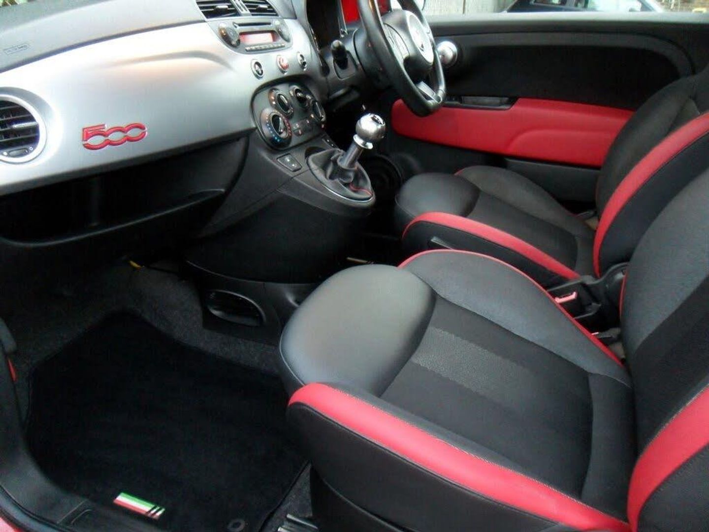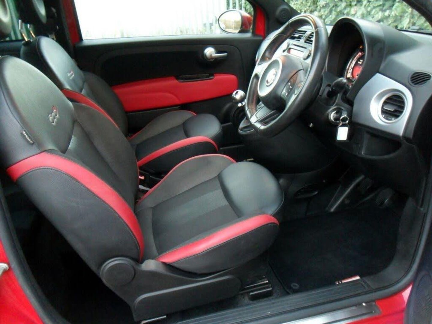 12V Socket - Front, 15in Alloy Wheels - 6Y8, 15in Alloy Wheels - Sport Bi-Colour - 439, ABS - Anti-Lock Braking System, Air Conditioning, Airbags - Driver, Airbags - Front Side, Airbags - Passenger, ASR - Anti-Slip Regulation, BAS - Brake Assistance System, Blue&Me - Hands Free System with USB Port, Blue&Me - Predisposition for TomTom, Body Coloured Bumpers, Body Coloured Door Mirrors, Cloth - Black-Red with Black Ambience, Dark Tinted Rear Windows, Drivers Knee Airbag, Dualdrive Power Steering, EBD - Electronic Brakeforce Distribution, Electric Front Windows, Electrically Adjustable Heated Door Mirrors, ESP - Electronic Stability Programme, Exterior Temperature Sensor, Fix and Go Puncture Repair Kit, Grab Handle, GSI - Gear Shift Indicator, Head Restraints - Rear, Height Adjustable Drivers Seat, Hill Holder, Leather - Black-Red Fabric Insert with Black Ambience, Locking Wheel Nuts, MSR - Motor Slip Regulation, Pasodoble Red, Radio-CD and MP3 Player, Rear Parking Sensors, Remote Central Locking, Seats - Passengers Memory Function, Seats-back Pockets, Space Saver Spare Wheel, Split Folding 50:50 Rear Seat, Steering Wheel - Black, Steering Wheel - Height Adjustment, Steering Wheel - Leather/Sports Abarth, Storage Under Passenger Seat, TFT Screen - Colour 7in, Thermal Windows, Tyre Pressure Monitor System, Window Airbags