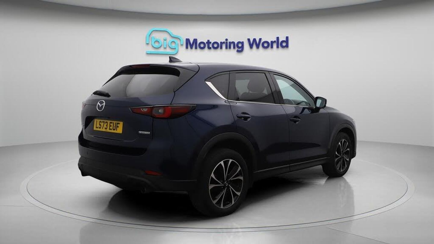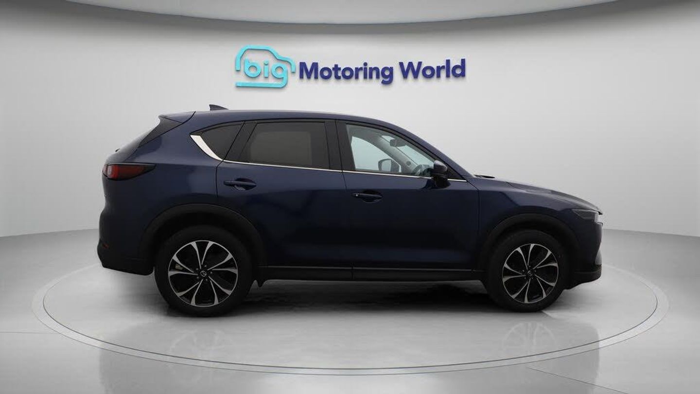19'' Alloy wheels,Leather Seats-Our Mazda CX-5 is finished in Blue. Specification includes a range of fantastic features including 19'' Alloy wheels, Leather Seats, Premium Sound System, Privacy Glass, Heated Seats, Wireless Phone Charging, Rear View Camera, Heated Steering Wheel, Bluetooth, Blind Spot Assist Specification information is supplied by CAPHPI and may vary to the actual car. This data does not form any part of a buying contact. Please check specification prior to purchase in-store. The MOT is valid until September 2026, visit bigmotoringworld.co.uk for more photos, a 360 tour, service history and a free HPI report.Were BIG on peace of mind and this Blue Mazda CX-5 has completed our comprehensive 200 point inspection and passed all checks. Its ready for you to drive away with immediate collection in-store. We include a 90-day warranty as standard plus an option to extend for up to 3 years.Reserve this car exclusively for you, safely and securely at bigmotoringworld.co.uk, with a fully refundable £99 deposit. Test drive before you buy, with no commitment, no hassle and a completely haggle free experience. Still searching and want to see thousands more cars? We are BIG on choice with over 8000 cars to choose from.Visit our award winning web site bigmotoringworld.co.uk.Were Big Motoring World and were BIG on what matters to you.