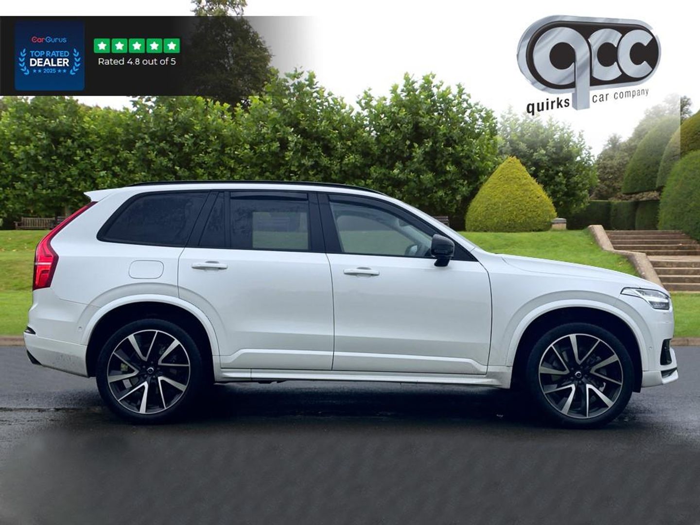 NATIONWIDE DELIVERY AVAILABLE! THIS VOLVO XC90 2.0 B6 MHEV ULTIMATE DARK FINISHED IN CRYSTAL WHITE WITH CHARCOAL BLACK NAPPA LEATHER BENEFITS FROM THE FOLLOWING SPECIFICATION, 7 SEATS WITH 3RD ROW SEATING, ELECTRIC PANORAMIC GLASS SUNROOF WITH ELECTRIC BLIND, 21" ALLOYS, BOWERS & WILKINS HIGH FIDELITY SOUND SYSTEM, CRYSTAL ORREFORS GEAR LEVER, HEAD UP DISPLAY (HUD), TOUCH SCREEN WITH SAT NAV, REAR VIEW REVERSE CAMERA, 360 CAMERA, PILOT ASSIST, DIGITAL DASH, HEATED M/F/S/WHEEL WITH ADAPTIVE CRUISE CONTROL AND VOICE CONTROL, ELECTRIC HEATED AND COOLED MEMORY COMFORT SEATS WITH LUMBAR SUPPORT AND MASSAGE FUNCTION, HEATED REAR SEATS, ELECTRIC FOLDING EXTERIOR MIRRORS, 3x ZONE AIR CON CLIMATE CONTROL WITH REAR AIR CON, AUTOMATICALLY DIMMING REAR VIEW MIRROR, AUTOMATIC HEAD LIGHTS, BLUETOOTH PHONE PREP, APPLE CARPLAY, PRIVACY GLASS, BLACK ROOF RAILS, POWER TAIL GATE/BOOT LID, ISOFIX POINTS, CENTRE ARM REST, PAN ROOF, SEVEN, THIRD, 5+2, QUIRKS CAR COMPANY ARE VERY PROUD WINNERS OF RUNNER UP FOR AUTOTRADER RETAILER OF THE YEAR 2021, WINNERS OF AUTOTRADER HIGHLY RATED FOR OUR CUSTOMER SERVICE 2021/20, AND WINNERS OF CAR GURUS TOP RATED DEALER 2021/20/19. WE USE THIRD PARTY SOURCES TO OBTAIN STANDARD AND OPTIONAL FITTED FEATURES AND SPECIFICATIONS. WE CANNOT BE HELD LIABLE FOR ITS ACCURACY SO PLEASE VERIFY THESE DETAILS WHEN VIEWING THE VEHICLE PRIOR TO PURCHASE. YOU MUST PHYSICALLY CHECK THE SPECIFICATION OF THE VEHICLE ON SITE PRIOR TO PURCHASE.