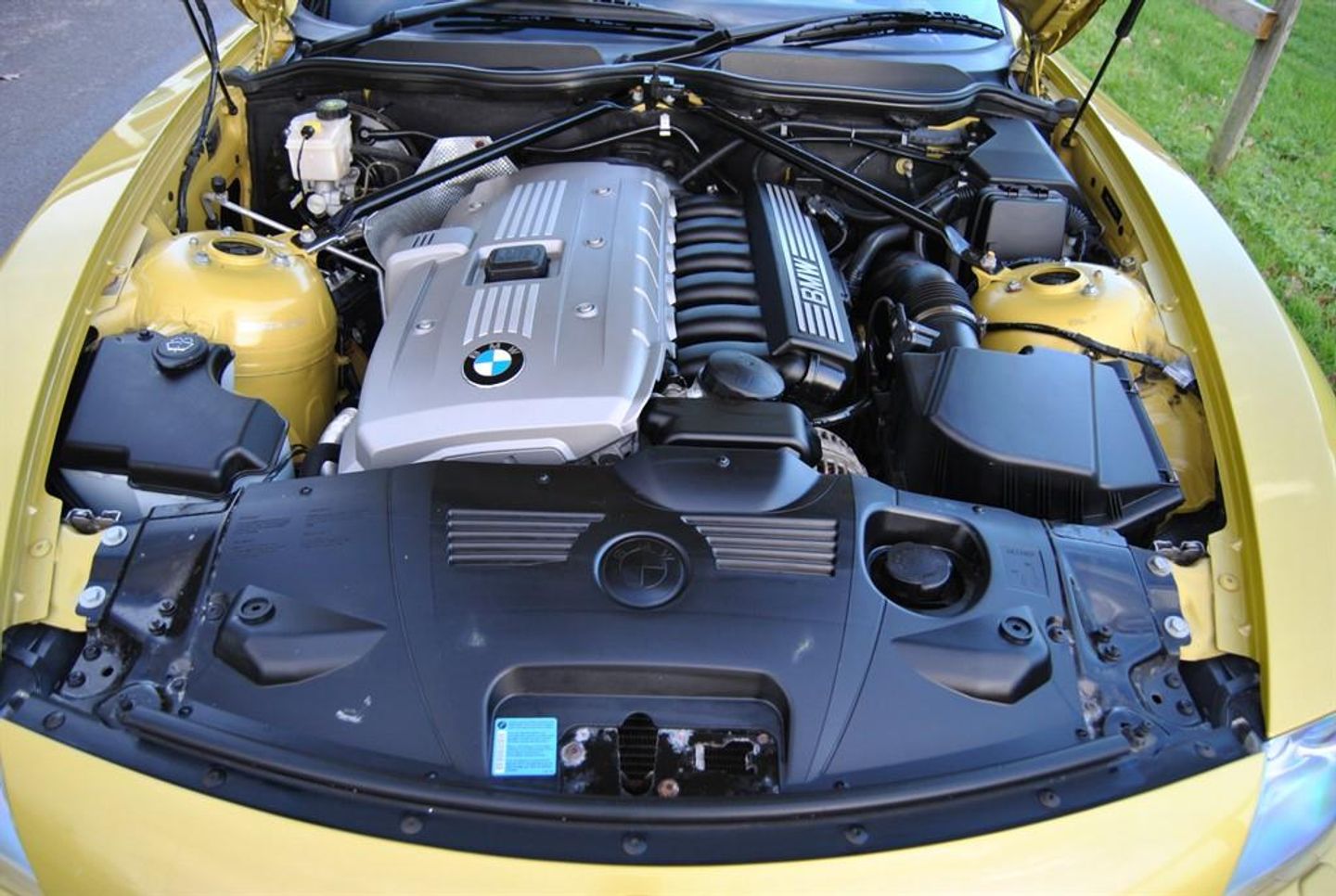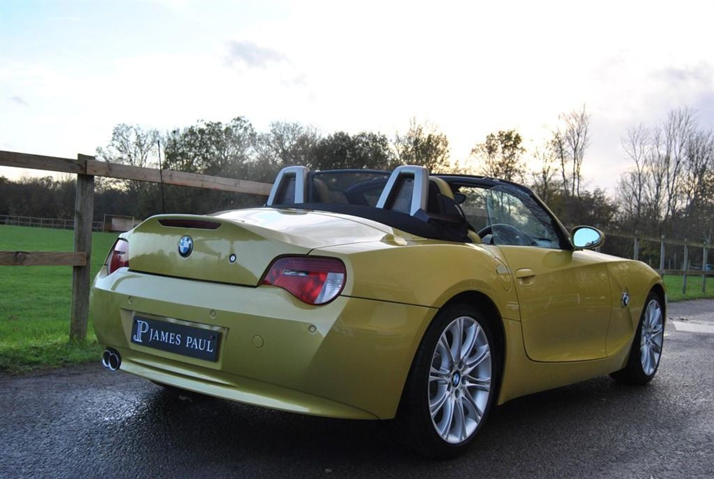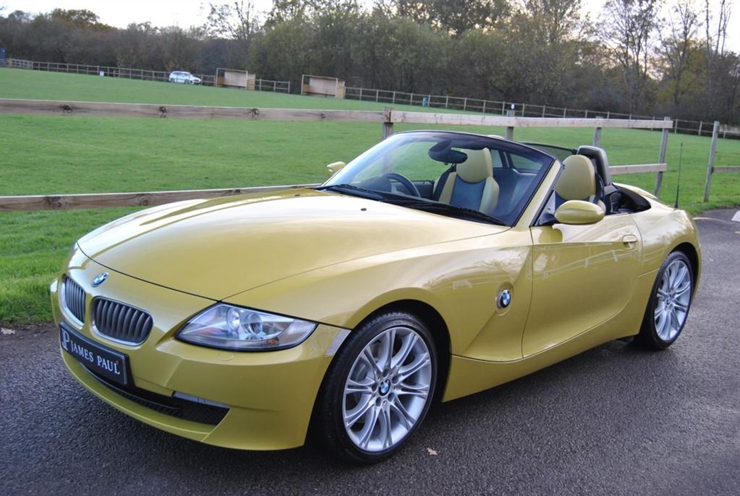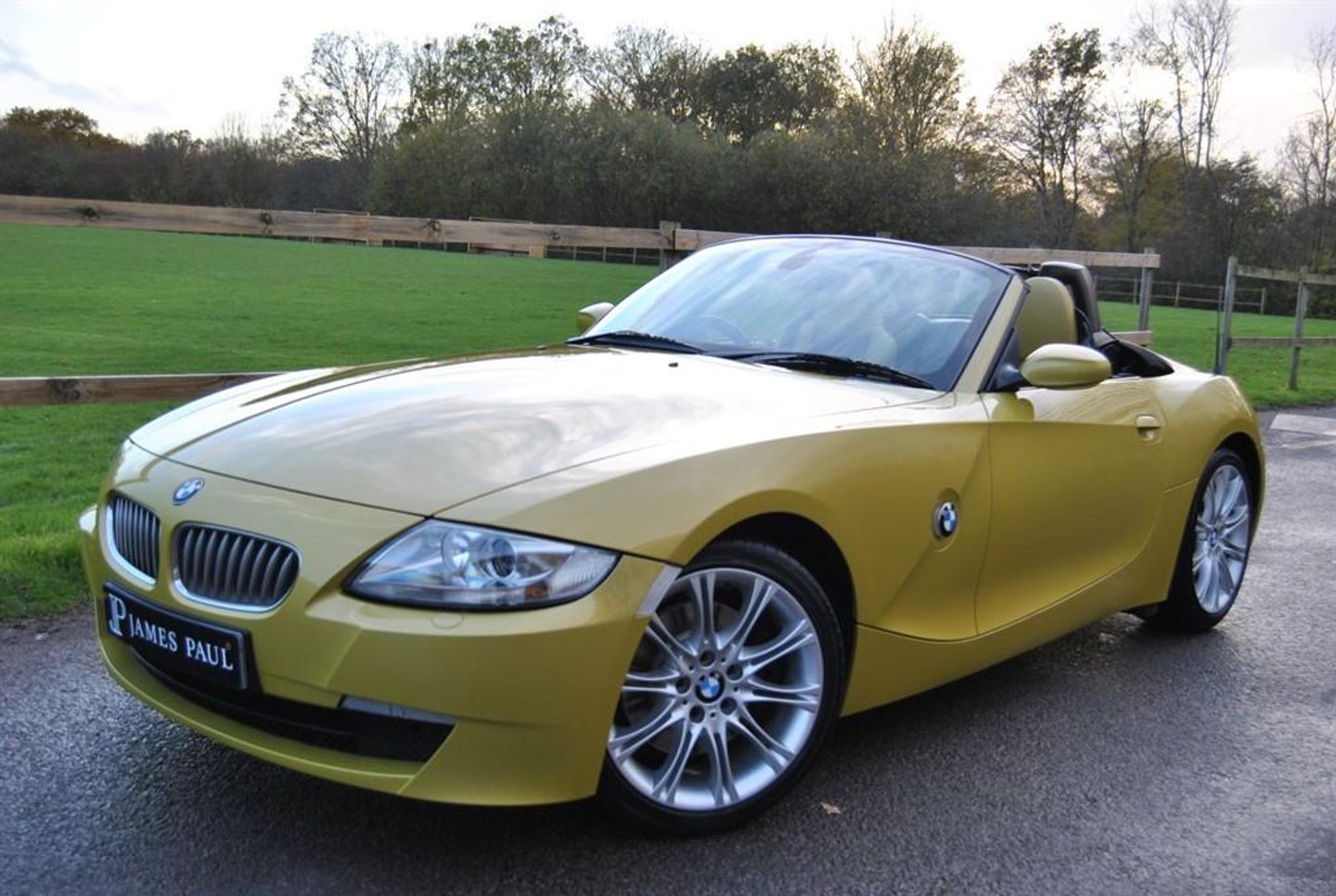 Stunning Z4 3.0Si Sport Roadster 6 Speed Manual finished in in Phoenix Yellow with 2 Tone Phoenix Yellow and Black Leather Sport Seats. Supplied by Blue Bell BMW Crew on the 30th of June 2006. This rare Phoenix Yellow 3.0 SI Sport Roadster has had 1 owner from new covering only 23.000 miles with a full BMW history throughout, supplied with the original service book and a large history file. Service logs as follows - Blue Bell BMW Crewe PDI -27th of May 2006 Blue Bell BMW - 8.042 miles Blue Bell BMW - 13.679 miles Blue Bell BMW - 14.263 miles Blue Bell BMW - 15.091 miles Blue Bell BMW - 15.850 miles Halliwell Jones BMW - 16.720 miles Halliwell Jones BMW - 19.827 miles Halliwell Jones BMW - 22.205 miles Driving dynamic control Multifunction steering wheel Alarm system Chrome Line Interieur Hardtop preparation Soft top electro mech all automatic Floor mats velours Warning triangle and first aid kit Interior mirror with automatic dip Seat adjustment electric with memory Storage compartment package Seat heating driver passenger Individual strips leather covered Headlight cleaning system Park Distance Control (PDC) Fog lights Rain sensor Automatic air conditioning On board computer Radio BMW Business CD CD changer for 6 CDs M Sports suspension M leather steering wheel M Sports seats White direction indicator lights M double spoke 135 18 inch MV II alloys A great opportunity to buy an ultra low mileage 6 Cylinder SI Sports Roadster with examples such as this getting thin on the ground, this car will also come fully serviced along with a fresh MOT. ULEZ COMPLIANT - NO CHARGE James Paul Car Sales is a family run business in a small village of Bucks Green conveniently situated on the Surrey and Sussex border. Established for over 35 years every car we offer is carefully hand selected and will come with a comprehensive provenance check. All of our vehicles are subject to a thorough pre delivery inspection through our workshops including a fresh MOT and service where required. Please ask us about our extremely competitive finance packages or Visit our website www.jamespaul.co.uk to create your own Finance Quote and Apply to help you fund your new car. Part exchanges welcome either way if you are looking to trade up or down. Please note that we do not accept reservations on cars via third party sites, if you wish to put a deposit on a car, please call 01403 823723 and speak to a member of the James Paul Car Sales team. 18in M double Spoke Alloy Wheels- Style 135,Anti dazzle Rear view mirror,BMW Assist,BMW ConnectedDrive- Assist,Brushed Aluminium Trim,CD player with MP3 decoder,No model inscription,Soft top- Black,Soft top- Dark Beige,Soft top- Grey,6CD Autochanger,Heated Seats,Leather- Individual Bi-Colour New England- Phoenix Yellow & Anthracite,Multifunction for Steering Wheel,Pheonix Yellow,Rear Park distance Control,Wind deflector