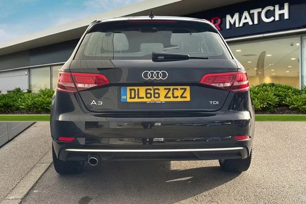 Alloys, Aux In, Bluetooth, Cruise Control, DAB, AC/Climate, Isofix, Light and Rain Sensor, Sat Nav, Advanced Safety;Available now is this fantastic Audi A3 1.6 TDI Sport Sportback offering an ideal blend of efficiency, comfort and premium styling, finished in elegant black paintwork and powered by a 1.6 diesel engine producing 110 PS. Its refined design includes Xenon headlights with LED daytime running lights, sleek body-coloured mirrors and subtle aluminium exterior trims, giving it a sophisticated road presence that suits both daily commutes and long-distance driving. The boot is practical and easy to access, offering enough space for everyday use, and the 60/40 split-folding rear seats provide added flexibility when carrying larger items or luggage. Inside, the cabin feels well-built and comfortable, with supportive Sport seats, high-quality materials and a clear, driver-focused layout. Dual-zone electronic climate control ensures a pleasant journey for all occupants, giving each front passenger the ability to set a temperature that suits them making sure everyone can stay warm and comfortable. The infotainment system includes a retractable 7-inch MMI screen with DAB radio, Bluetooth, Audi Smartphone Interface and SD-card-based navigation, giving you intuitive access to entertainment, communication and route guidance. The 17-inch 5-arm design alloy wheels complete the sporty look, while features such as cruise control, ISOFIX mounting points, the Colour Driver Information System and multiple airbags enhance comfort and safety. Audi Drive Select allows you to tailor the driving feel...