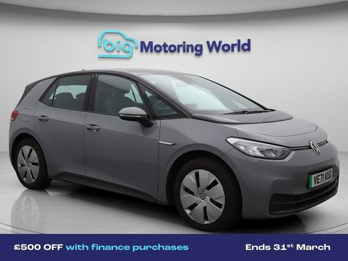 £500 towards your finance depo-Our Volkswagen ID.3 is finished in Grey. Specification includes a range of fantastic features including £500 towards your finance deposit, Apple CarPlay, Adaptive Cruise Control, Lane Assist, Android Auto, Heated Seats, Heated Steering Wheel, Bluetooth, Blind Spot Assist, Parking Sensors Specification information is supplied by CAPHPI and may vary to the actual car. This data does not form any part of a buying contact. Please check specification prior to purchase in-store. The MOT is valid until November 2026, visit bigmotoringworld.co.uk for more photos, a 360 tour, service history and a free HPI report.Were BIG on peace of mind and this Grey Volkswagen ID.3 has completed our comprehensive 200 point inspection and passed all checks. Its ready for you to drive away with immediate collection in-store. We include a 90-day warranty as standard plus an option to extend for up to 3 years.Reserve this car exclusively for you, safely and securely at bigmotoringworld.co.uk, with a fully refundable £99 deposit. Test drive before you buy, with no commitment, no hassle and a completely haggle free experience. Still searching and want to see thousands more cars? We are BIG on choice with over 8000 cars to choose from.Visit our award winning web site bigmotoringworld.co.uk.Were Big Motoring World and were BIG on what matters to you.