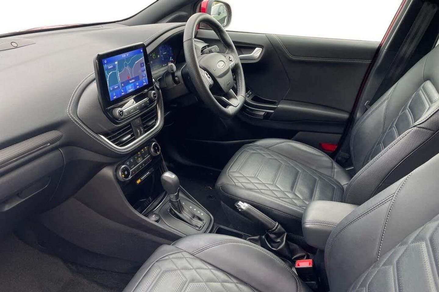 Inflation Kit, 18in Alloy Wheels - Unique 5x2-Spoke - ST-Line Vignale, ABS - Anti-lock Braking System, Acoustic Laminated Windscreen, Active Grille Shutter, Automatic Dimming Rear View Mirror, Automatic Headlights with Rain-Sensing Wipers and Auto High Beam, B&O Premium Audio System and Ford SYNC 3 Navigation, Brighter Upper Door Frame Mouldings, Carbon-Look Interior Deco Spears, Centre Console - Premium with Openable Stowage Area with USB Connectivity - 2 Cupholders and 12v Power Point, Courtesy Lights - Ambient LED Courtesy Lighting - Single Colour, Cruise Control with Intelligent Speed Assist, Drivers Manual 4-Way Seat Adjustment with Manual Lumbar Adjust, ESC - Electronic Stability Control and Hill Start Assist, Ecoboost Hybrid Tailgate Badge, Electric Windows - Front and Rear, Electronic Air Temperature Control - EATC, Emergency Brake Warning - Automatic Hazard Warning Lights, First Aid Kit Strap, Fixed LED Signature Headlamps, Floor Mats - Front and Rear, Ford KeyFree System, Ford MegaBox Extended Bootspace, Ford Power Starter Button, Front Bumper - Unique ST-Line Vignale Design - Body Colour, Front Door Threshold Plates - ST-Line, Front Fog Lights, Front Parking Sensors, Front Seats - Sports Style, Full Digital 12.3in Instrument Cluster, Handbrake - Black Sensico Trimmed with Stitching, Headliner - Deluxe, Instrument Panel - High Level, Intelligent Speed Assistance, LED Rear Lights, Lane Keeping Aid with Lane Departure Warning, Large Rear Spoiler - Body Colour with Centre High Mounted Stop Light, Locking Wheel Nuts, Lower Bodyside Moulding - Body Colour - High Gloss Black Painted Spear with Chrome Insert, Passenger 4-Way Seat with Lumbar Adjustment, Post Collision Braking, Power Steering, Power-Foldable Heated Door Mirrors with Puddle Lamps and Puma Logo Projection, Pre-Collision Assist with Autonomous Emergency Braking and Pedestrian-Cyclist Detection, Premium Sensico Wrapped Instrument Cluster, Privacy Glass, Puma Badge, Quickclear Heated Windscreen, Rear Bumper - ST Line Vignale Body Colour with Special Masking, Rear Parking Sensors, Rear Seats - 2-Way Head Restraint Up-Down, Rear Seats - Second Row 60-40 Folding Seats, Remote Central-Double Locking, Restrain Device Pack, ST-Line Badge, ST-Line Flat-Bottomed Leather Steering Wheel with Unique Red Stitching, Selectable Driving Modes - Normal - Eco - Sport - Slippery and Trail, Soft-feel Gearshift Boot with Metal Grey Stitching, Speed Limiter, Sports Suspension, Tailgate - Manual, Thatcham Alarm, Traction Control and Emergency Braking Assistance, Trip-Fuel Computer, Tyre Inflation Kit, Tyre Pressure Monitoring System - TPMS, Vignale Body Styling Kit, Winter Pack, Wireless Charging Pad with Electronic Air Temperature Control EATC