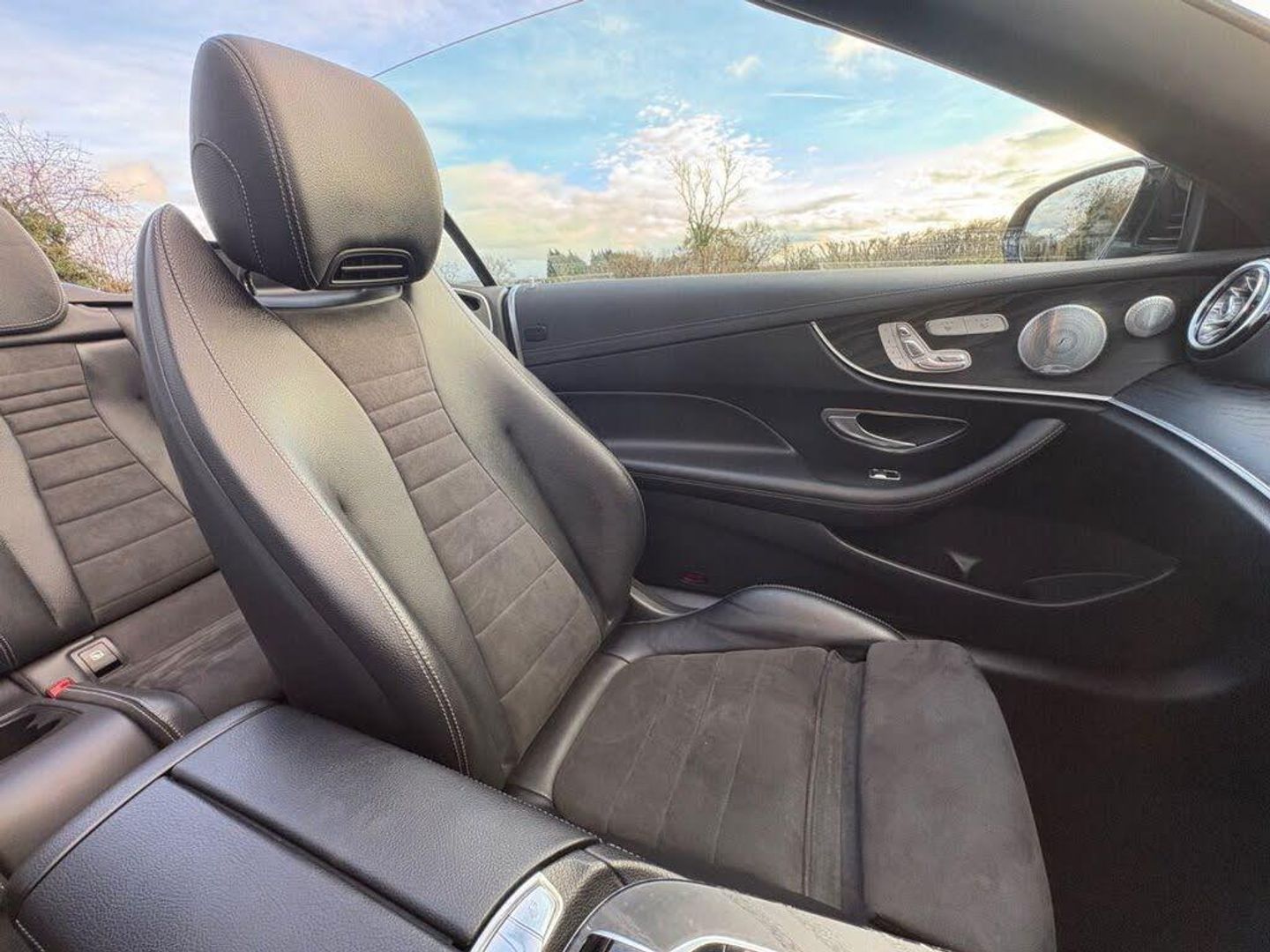 Black, 19in Alloy Wheels - 5-Twin-Spoke Design - Painted Titanium Grey with High-Sheen Finish, ABS - Anti-Lock Braking System, AIRCAP - Wind Deflector and Draught-Stop, AIRSCARF - Neck Level Heating System, AMG Bodystyling - Front and Rear Apron - Side Skirts, AMG Boot Lid Spoiler in Body Colour, ATTENTION Assist, Acoustic Soft-Top - with Enhanced Climate and Noise Comfort, Active Bonnet - Pedestrian Safety which Detects an Impact and Raises Bonnet, Active Brake ASSIST, Active Park Assist, Adaptive Brake Lights, Adaptive Brake System with HOLD Function and Brake Drying in the Wet, Agility Control Suspension with Selective Damping System and Lowering by 15mm, Airbag - Kneebag for Driver, Airbags - Driver and Front Passenger with Extended Adaptivity for Front Passenger Airbag, Airbags - Headbags, Airbags - Sidebag for Driver and Front Passenger - Combined Thorax-Pelvis Bag, Airbags - Windowbags, Alarm System with Immobiliser and Interior Protection, Analogue Clock in Centre Console, Artico Leather Upper Dashboard with Contrast Stitching, Audio 20 USB, Automatic Child Seat Recognition Sensor, Automatic Climate Control - Two-Zone, Belt Feeder, Brake Wear Warning Display, Canopy - Black, Central Locking with Interior Switch-Automatic Locking and Crash Sensor with Emergency Opening Function, Central Stowage Compartment with 12V Socket in Centre Console, Cruise Control with Variable Speed Limiter, DAB Digital Radio Tuner, Direct-Steer Speed Sensitive Steering, Door Mirrors - Heated and Electrically Adjustable, Door Pins in Chrome, Dynamic Select with a Choice of Driving Modes - Comfort - ECO - Sport - Sport Plus - Individual, ESP - Electronic Stability Programme, Electric Parking Brake, Electric Windows - 4 - With One-Touch Opening and Closing - including Obstruction Sensors, Electronic Key - Chrome Surround, Exhaust System - Visible Twin-Pipe Integrated into the Bumper, First Aid Kit and Warning Triangle, Floor Mats with AMG Lettering, Front Centre Armrest with Stowage Compartment, Front Door Sill Panels with Mercedes-Benz Lettering - Illuminated, Fully-Automatic Boot Separator, Glove Compartment - Lockable - Air-Conditioned and Illuminated, Head Restraints for Driver and Front Passenger 4-Way and in Rear 2-Way Adjustability, Headlamps - LED High Performance with Integrated LED Daytime Running Lights, Heated Front Seats, ISOFIX Child Seat Attachment Points - Rear Seats, Incorrect Fuelling Protection, Instrument Cluster with Two Tube-Design Round Dials and 8.4in TFT Multifunction Display, Interior 64-Colour Ambient Lighting, KEYLESS-GO Starting Function, MAGIC VISION CONTROL - Heated Windscreen Wiper System, Mercedes Me Connect, Mirror Package, Outside Temperature Display, Perforated Front Brake Discs with Mercedes-Benz Lettering, Pre-Safe Anticipatory Safety System, Premium Plus Package, Radiator Grille with Integrated Mercedes-Benz Star - Single Louvre in Matt Iridium Silver With Chrome Trim, Rain Sensing Windscreen Wipers, Rear Lights - LED, Remote Boot Release, Reversing Camera, Run Flat Tyres, SD Card-Based Navigation System, Seat Belts - Three-Point, Seat Comfort Package - Driver and Front Passenger Seat, Seat Occupancy Sensor - Front Passenger Seat, Seats - Rear Split Folding 50-50, Service Indicator ASSYST, Sports Pedals in Brushed Stainless Steel with Black Rubber Studs, Status Display for Rear Seat Belts in Instrument Cluster, Steering Column - Manually Adjustable for Height and Reach, Steering Wheel - 3-Spoke AMG Multi-Function with Touch Control Buttons - Trimmed in Black Nappa Leather with Flattened Bottom Section, Steering Wheel - Gear Shift Paddles, Steering Wheel - Touch-Control Buttons for Audio and Onboard Settings, Stowage Package, Sun Visors with Illuminated Vanity Mirrors, Sunglasses Compartment in Overhead Control Panel, Top Surround of Side Windows in Polished Aluminium, Trim - Centre Console in Black Open-Pore Ash Wood, Trim - Dashboard and Door - Black Open-Pore Ash Wood, Trip Computer in Multi-Function Display Showing Current Fuel Consumption, Tyre Pressure Monitoring System, USB Ports in Centre Console x2, Waistline in Polished Aluminium