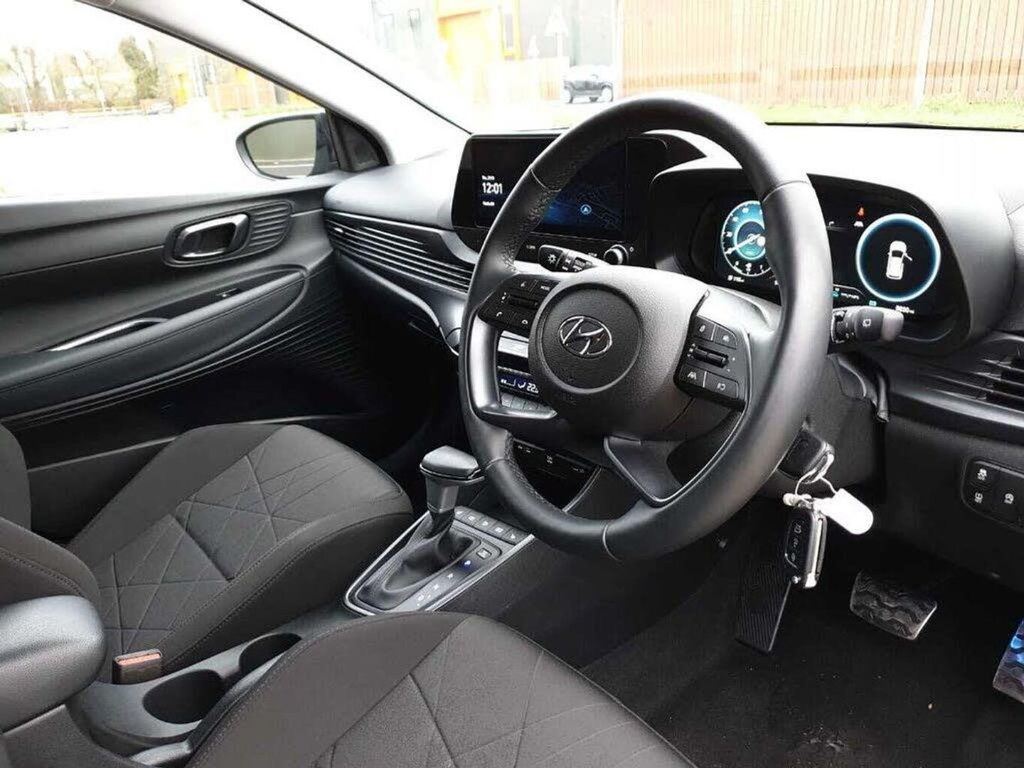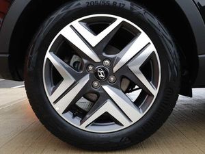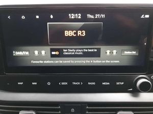 Pearl - Phantom black, Cloth - Black, Adjustable intermittent front windscreen wipers with aero wiper blade, Automatic windscreen wipers with rain sensor, Electric front/rear windows with drivers one touch/anti-trap, Privacy glass - Rear windows and tailgate, Rear wash/wipe with intermittent wipe setting, Tinted windshield, Body colour bumpers, Body colour door handles, Chrome finish window surround, Gloss black radiator grille, Rear roof spoiler with integrated LED brake light, Rear side wing doors, Roof rails, Shark fin antenna, Automatic headlights with dusk sensor, High beam assist, LED daytime running lights, LED headlamps, LED rear combination lights, Static Cornering lights, Anti-lock braking system (ABS), Autonomous emergency braking, Electronic Stability Programme (ESP), Hill start assist control (HAC), Vehicle stability management, Bluelink telematics, Cruise control with speed limiter, Drive mode selector, Driver attention alert system, Electric power steering, Emergency stop signalling system, Forward collision assist with pedestrian monitoring and cycle detection, Lane departure warning system with lane keep assist - LKAS, Rear parking sensors, Rear view camera, Auto dimming rear view mirror, Body colour door mirrors with integrated indicators, Electric adjustable/heated/folding door mirrors, 3 point front seatbelts with pre-tensioners, 3 point rear seatbelts, Airbags - front, front side and curtain airbags, Childproof rear door locks, Front and rear seatbelt reminder, Front passenger airbag deactivation switch, Height adjustable front seatbelts, Impact sensing auto door unlocking, Isofix child seat anchorage points - rear, Tyre pressure monitoring system, Bluetooth connectivity with voice recognition, eCall emergency call system, Wireless charging pad, 2 front and 2 rear speakers with 2 tweeters, DAB radio, Steering wheel mounted audio/phone controls, USB and aux connection in front, 10.25'' digital supervision cluster, 10.25'' touchscreen centre console display satellite navigation including traffic messaging channel, map care and live services, Phone connection with apple carPlay and android auto, Trip computer, Black mono interior trim, 3 rear seats, 60/40 split folding rear seat, Adjustable head restraints, Driver's seat manual height adjustment, Heated front seats, Single front passenger seat, Automatic climate control with defog system for front windscreen, 12V power outlet in front console, Cloth seat trim, Front armrest/storage, Heated steering wheel, Height/reach adjustable steering column, Leather wrapped gear shift knob, Leather wrapped steering wheel, Luggage board, Satin chrome interior door handles, Blue interior mood lighting, Cabin and luggage compartment interior lighting, Interior front map reading light, Illuminated driver/passenger vanity mirror, Deadlocks, Immobiliser, Locking wheel nuts, Perimeter alarm, Remote control central locking, Speed sensitive automatic door locking, Michelin Tyre brand, 17'' Alloy wheels, Tyre repair kit