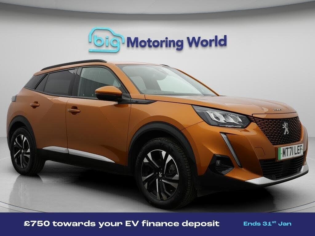 £750 towards your finance depo-Our Peugeot E-2008 comes with optional extras worth £200. Specification includes a range of fantastic features including £750 towards your finance deposit, 17'' Alloy Wheels, Part Leather Seats, Leather Seats, Visibility Pack, Android Auto, Privacy Glass, Rear View Camera, Bluetooth, Parking Sensors Specification information is supplied by CAPHPI and may vary to the actual car. This data does not form any part of a buying contact. Please check specification prior to purchase in-store. The MOT is valid until October 2026, visit bigmotoringworld.co.uk for more photos, a 360 tour, service history and a free HPI report.Were BIG on peace of mind and this Orange Peugeot E-2008 has completed our comprehensive 200 point inspection and passed all checks. Its ready for you to drive away with immediate collection in-store. We include a 90-day warranty as standard plus an option to extend for up to 3 years.Reserve this car exclusively for you, safely and securely at bigmotoringworld.co.uk, with a fully refundable £99 deposit. Test drive before you buy, with no commitment, no hassle and a completely haggle free experience. Still searching and want to see thousands more cars? We are BIG on choice with over 8000 cars to choose from.Visit our award winning web site bigmotoringworld.co.uk.Were Big Motoring World and were BIG on what matters to you.