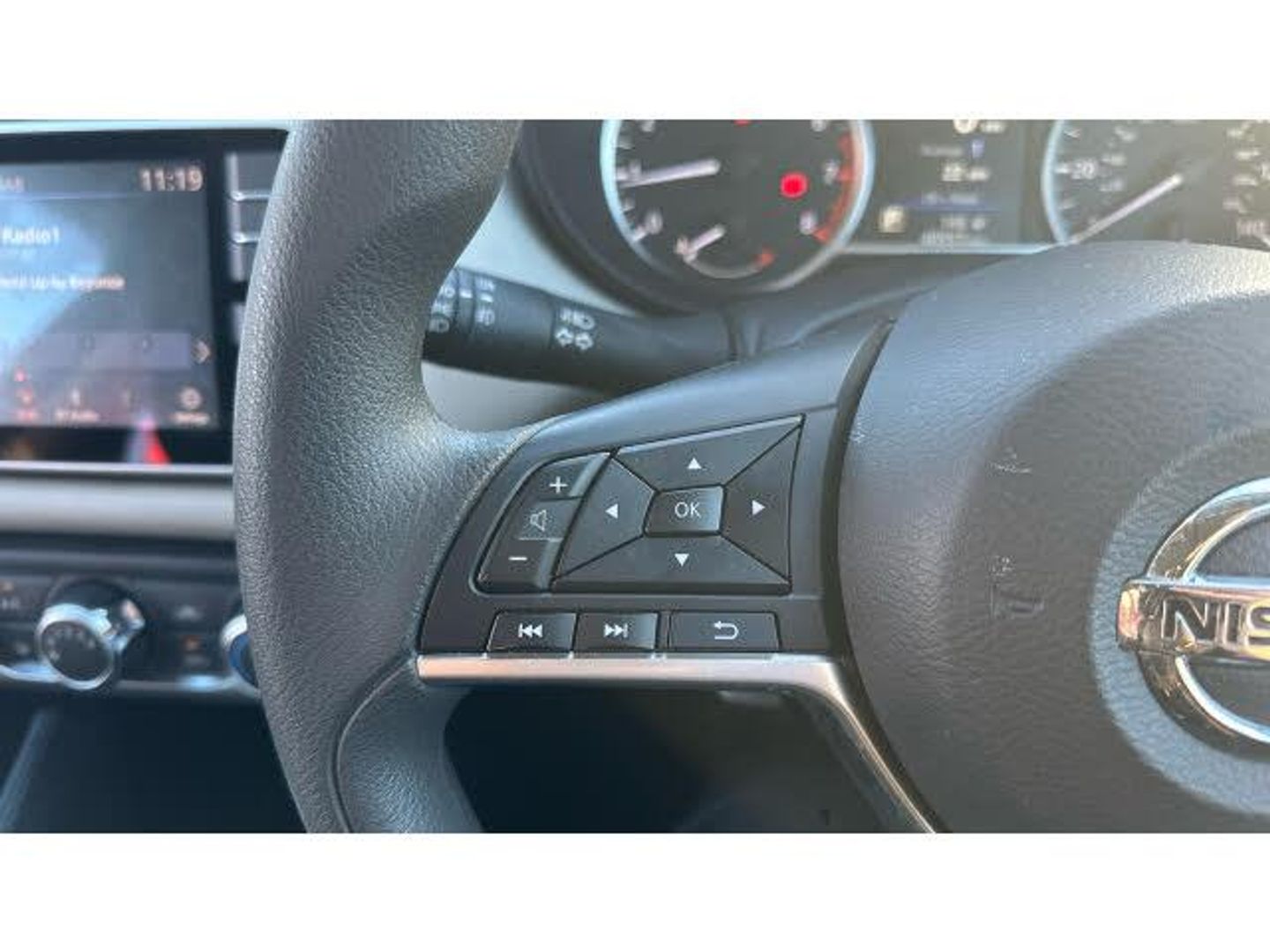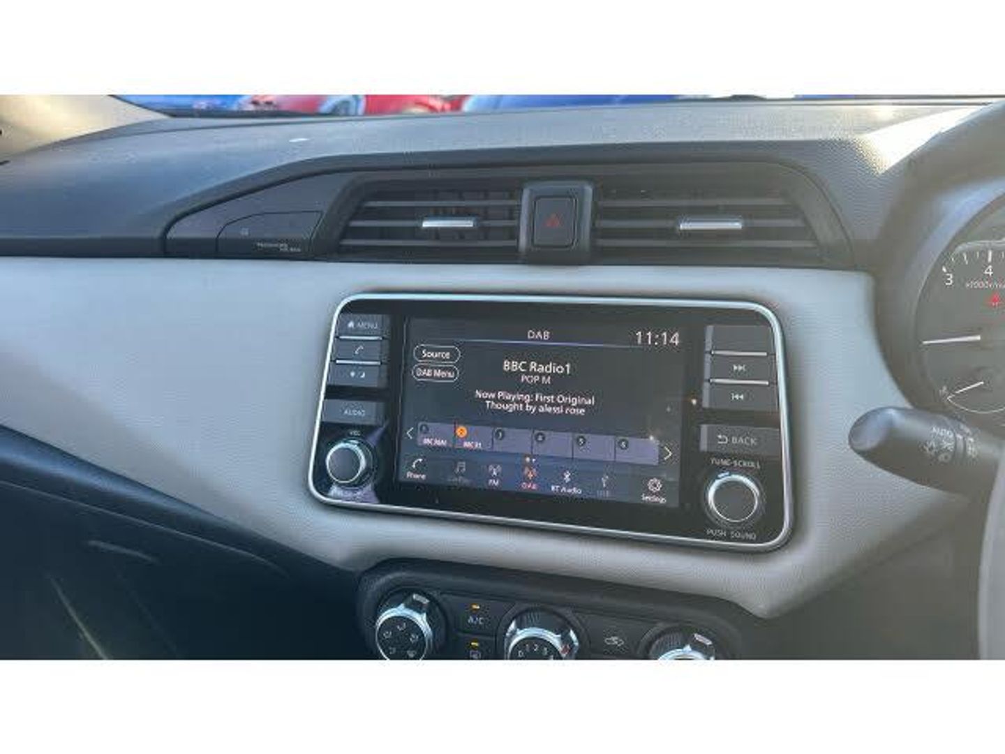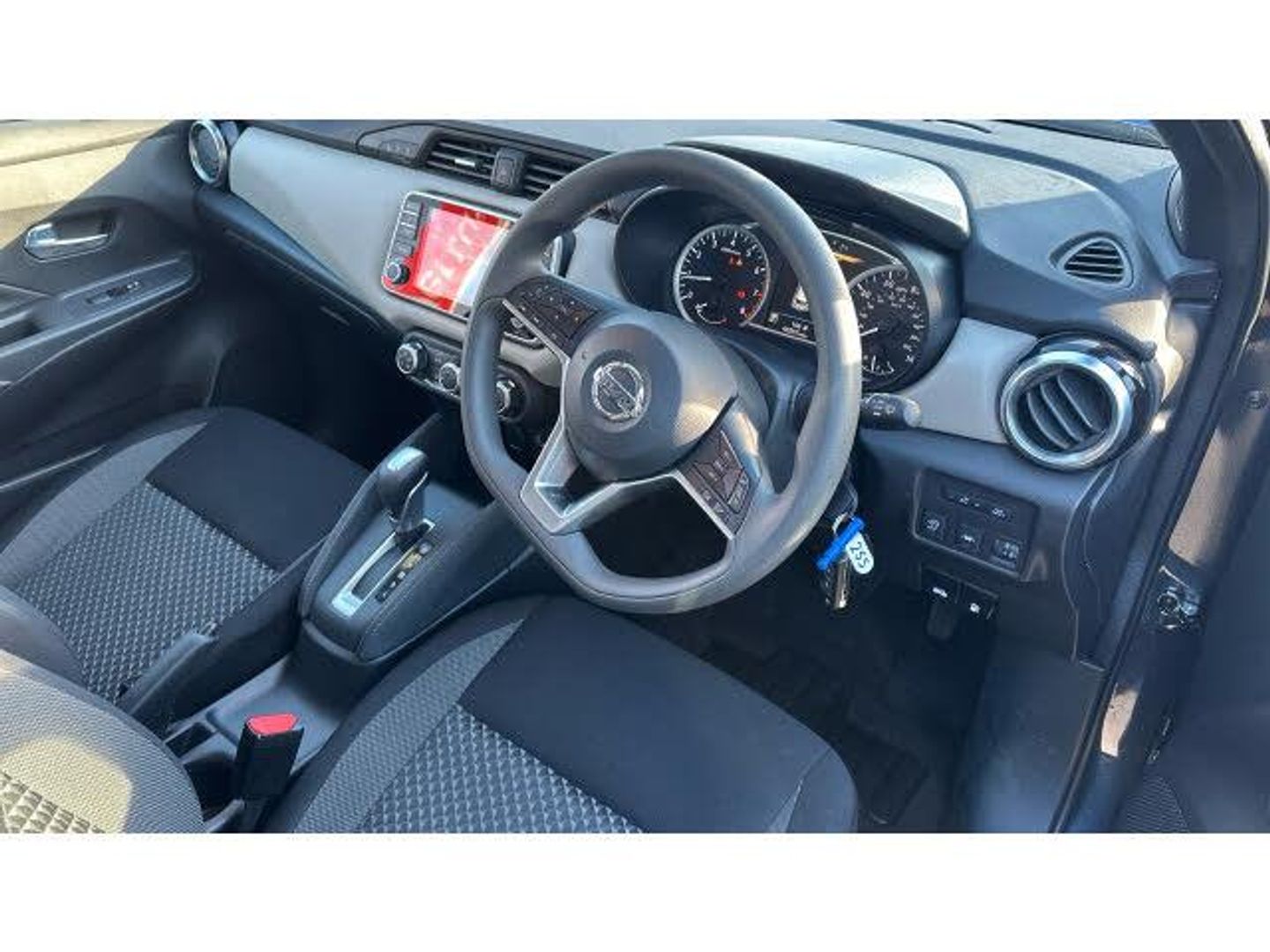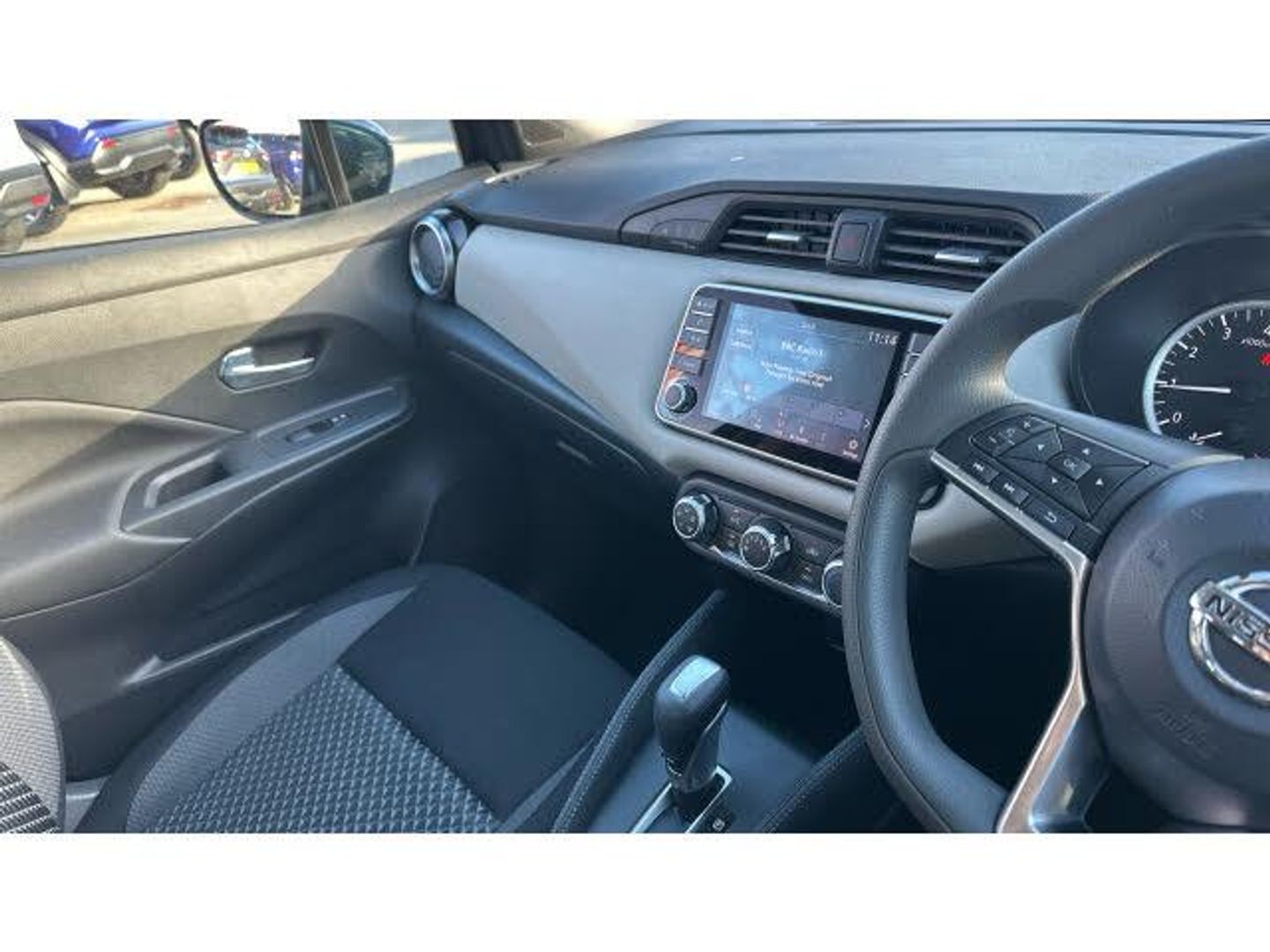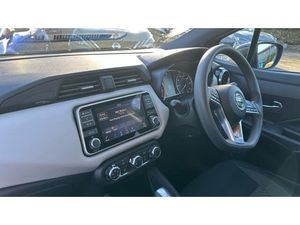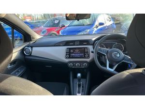 Rear wiper with reverse link, Rain sensor windscreen wipers, Power front windows, Variable front intermittent wipers, Intelligent emergency braking with pedestrian recognition, ABS+EBD+Brake assist, Hill start assist, Bluetooth system, Traffic sign recognition, Adjustable speed limiter, Power assist steering, Lane departure prevention, Cruise control, Lane departure warning system, Engine start button, Stop/start system, Smartphone integration with Apple CarPlay and Android auto, Nissan connect display audio, Outside temperature gauge, Trip computer, Advanced drive assist display 5'' TFT coloured screen, eCall emergency call system, Body coloured door mirrors, Door mirror integrated indicators, Electrically adjustable door mirrors, USB/iPod connection, Audio system with MP3, 4 speakers, DAB Digital radio, Steering wheel mounted audio controls, Concealed rear door handles, Jacknife key type x1, Rear roof spoiler, Antenna, Body coloured bumpers