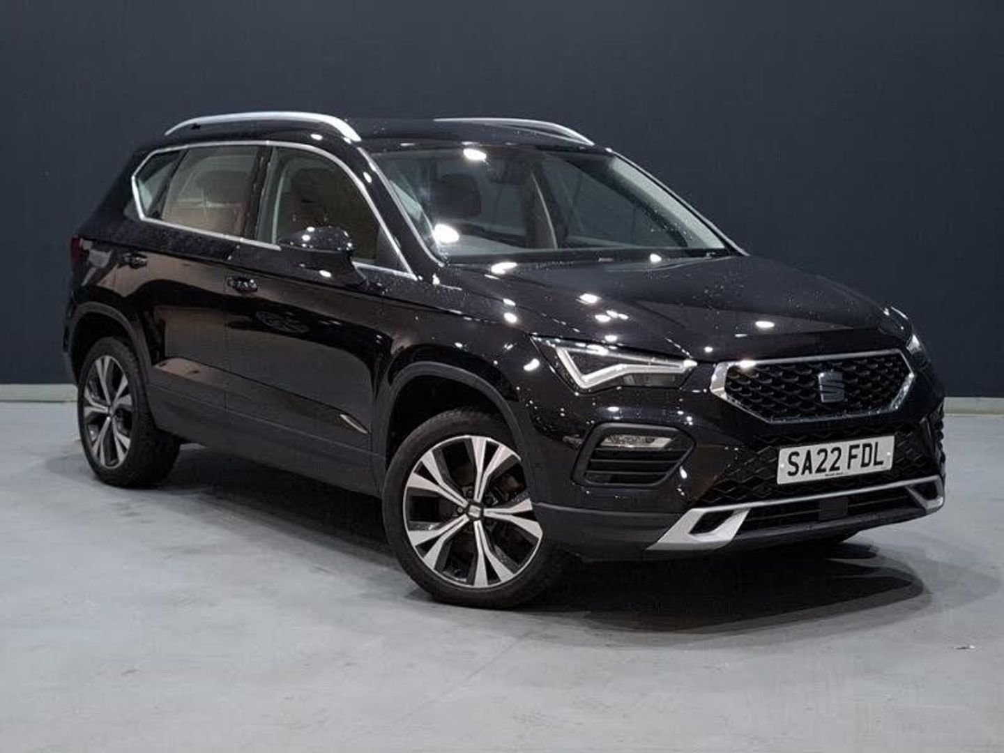 Cruise control system with speed limiter, SEAT drive profile with driving experience button - Normal, Sport, Eco and Individual mode, gearshift, steering and throttle response, Self parking functionality (includes front and rear parking sensors), Wireless phone charger, Wireless full link smartphone integration, Full LED headlamps with lens and LED front fog lamps with cornering function, LED rear tail lights with dynamic indicators, Daytime running lights, Dynamic headlight range control with self adjusting whilst driving, ISOFIX points in outer rear seats with top tether anchorage points, Dual zone climate control, Navigation system pack with DAB - Ateca, Interior lighting pack - Ateca, Hill hold control, Front assist with autonomous emergency braking, Tiredness recognition system, Keyless entry, 18" Performance machined alloy wheels 36/2 in nuclear grey