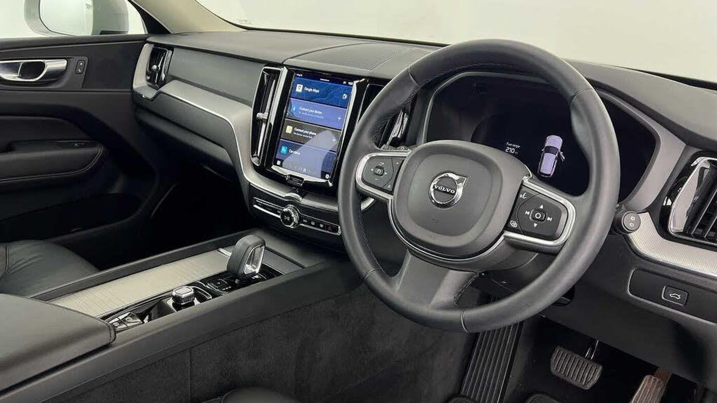 Power Driver's Seat with Memory, Temporary spare wheel, 19 5-V Spoke Black Diamond Cut, Digital Service. 3 year subscription, Metal Mesh aluminium decor, Leather-free steering wheel with Uni-deco trim. Charcoal, 8-speed Automatic transmission. AWD, Pedals, Tailored gear shift, 2-Zone Electronic Climate Control, Afterrun parking climate, Passenger Airbag Cut Off Switch, Dual Stage Driver and Passenger Airbags, Driver Knee Airbag, Blond headlining, Road Sign Information, Driver Alert Control with Lane Keeping Aid, High Gloss Black Front Grille, Heated grill emblem, LED headlights, Rear fog lights switched off when trailer fog lights are running, 12-inch driver display, Google Assistant. Google Maps and Google Play Store - included for 4 years, Cruise Control, Adjustable Speed Limiter, Volvo Cars App remote functions - included for 4 years, DAB (Digital Audio Broadcasting) Radio, High Performance Sound, Autofolding Heated Power Door Mirrors, Wireless/Inductive Mobile Phone Charging, Automatic door locking, Remote control shell. Charcoal plastic, Colour adapted rear view mirror covers, Anti-theft Alarm including Immobiliser. Volume Sensor and Level Sensor, Power Child Locks, Power Operated Tailgate, "CleanZone" Air Quality System and Pollen Filter, Digital owners manual, Leather upholstery, Power Driver's Seat with Memory, Heated front seats, 5 seats, Mechanical release second seat row, Power-operated 2-way lumbar support, Textile mats, Load Protection Net, Rear centre armrest, Illuminated Vanity Mirrors, Interior mid level illumination, 12v Socket - Cargo Area, Load cover. manual, Automatically dimmed inner and outer rear view mirrors, Chassis, Hill Start Assist, Indirect Tyre Pressure Monitoring System (iTPMS), Oncoming Lane Mitigation, Hill Descent Control, EBL. Flashing Brake Light and Hazard Warning, Adaptive power steering, 19 5-V Spoke Black Diamond Cut, Temporary spare wheel, Locking Wheel Nuts, Washer Nozzles, Cargo opening metal scuff plate, Volvo tread plates. aluminium, Black side window trim, Roof Rails - Integrated Black, All-wheel Drive (AWD), Tempered side windows, Park assist. rear and front, Ticket holder, Park assist camera. rear, Protective cap kit. Matt Tech Grey, Apple CarPlay, Comfort Front Seats, 9-inch centre display, Whiplash injury protection system, IC (Inflatable Curtains) - Full Length, Side impact protection, ISOFIX Attachment (Outer Rear Seats), Safety belts, Rain Sensor - Automatic Windscreen Wiper Activation, Steering Wheel Remote Infotainment Control, Humidity sensor, Start/Stop technology, Bluetooth® Handsfree System