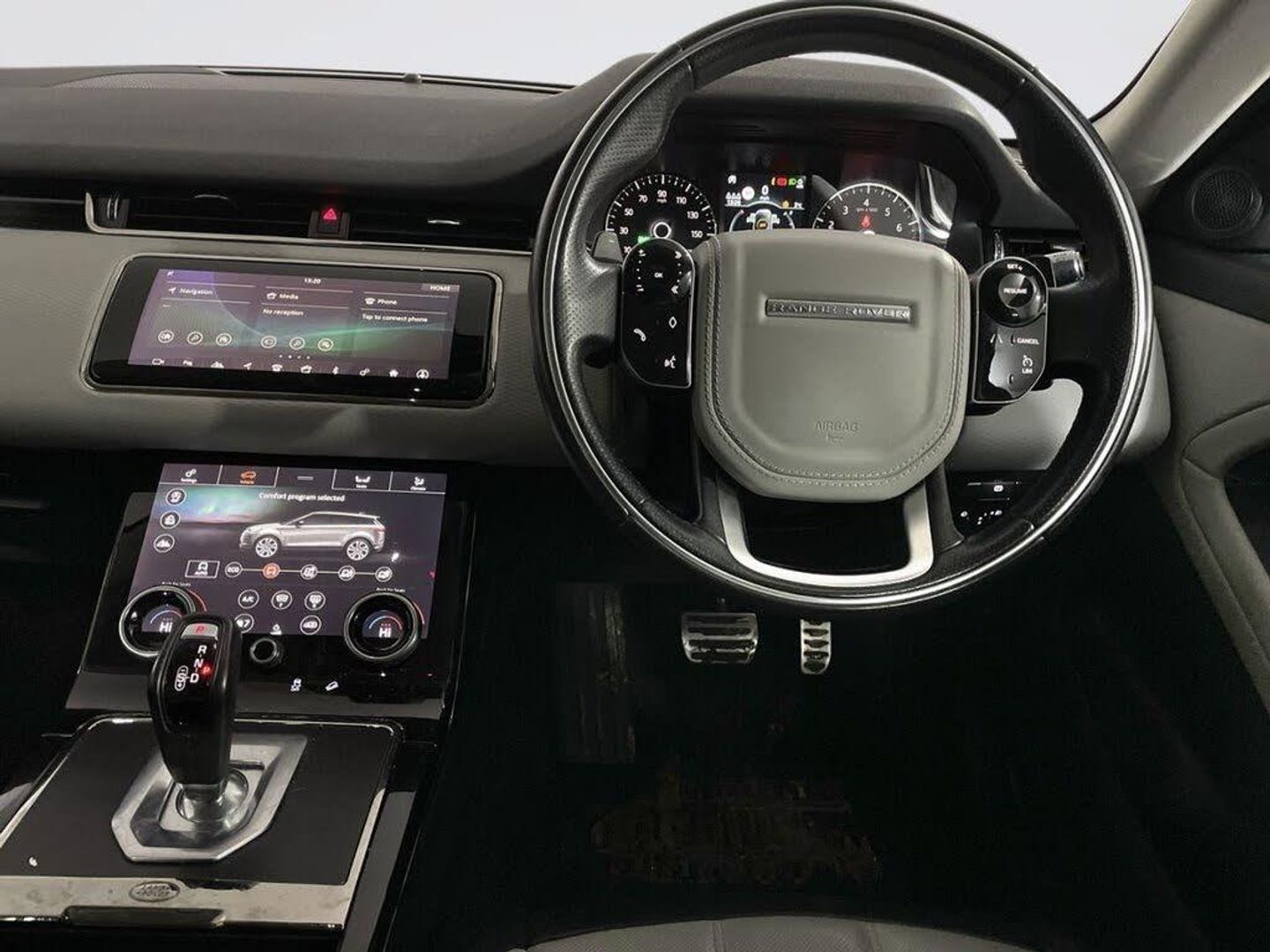 10in Touch Pro, Android Auto, Apple CarPlay, Bluetooth Connectivity, DAB - Digital Audio Broadcast, InControl - Remote App, InControl Apps, Navigation Pro, Power Socket Pack 1, Pro Services and Wi-Fi Hotspot, Sound System, 18in Alloy Wheels - 5-Split Spoke - Style 5074 - Gloss Sparkle Silver, All Season Tyres, Auto-Dimming - Power Fold - Heated Door Mirrors with Approach Lights, Body Coloured Roof, Electric Windows with One-Touch Open-Close and Anti-Trap, Evoque and R-Dynamic Badge, Flush Deployable Door Handles, Heated Rear Window with Timer, Locking Wheel Nuts, Manual Tailgate, P200 Badge, R-Dynamic Exterior Pack, Rear Fog Lights, S Badge, Shadow Atlas - RANGE ROVER - Bonnet and Tailgate Script, Standard Roof, Tailgate Spoiler, Tyre Repair System, Windscreen - Heated, Windscreen Washer Jets - Heated, ClearSight Interior Rear View Mirror, 10-Way Heated Electric Front Seats, 40-20-40 Split Fold Rear Seat, Ambient Interior Lighting, Analogue Dials with Central TFT Display, Auto-Dimming Interior Rear View Mirror, Black Gearshift Paddles, Bright Metal Pedals, Carpet Mats, Chrome Treadplates, Headlining - Ebony Morzine, Leather Steering Wheel, Manually Adjustable Steering Column, Overhead Lighting Console, Overhead Stowage for Sunglasses, Passive Front Headrests, Push Button Start, Rain Sensing Windscreen Wipers, Rear Air Vents, Seats - Rear Centre Head Restraint, Smart Settings, Sun Visors - Illuminated Vanity Mirrors, Trim Finish - Gradated Linear Dark Aluminium, Twin Front Cupholders with Cover, Twin Sliding Front Centre Armrest, Two-Zone Climate Control, 360 Surround Camera, Santorini Black, Automatic Headlights, EPAS - Electronic Power Assisted Steering, LED Headlights, Large Fuel Tank - 65L, Manual Headlight Levelling, Passive Suspension, Torque Vectoring, Keyless Entry, ABS - Anti Lock Braking System, ATPC - All Terrain Progress Control, Airbags - Driver Knee, Airbags - Front - Driver and Front Passenger, Autonomous Emergency Braking, Brake Pad Wear Indicator, Cruise Control and Speed Limiter, Customer Configurable Autolock, DSC - Dynamic Stability Control, Driver Condition Monitor, EBA - Emergency Brake Assist, EBD - Electronic Brake-Force Distribution, ETC - Electronic Traction Control, Efficient Driveline, Electric Parking Brake, Front and Rear Parking Aid, HDC - Hill Descent Control, Hill Launch Assist, Intrusion Sensor, Lane Keep Assist, Low Traction Launch, Power Operated Child Locks, RSC - Roll Stability Control, Rear ISOFIX, Rear View Camera, Seat Belt Reminder, Side Curtain Airbags and Thorax, TPMS - Tyre Pressure Monitoring System, Terrain Response 2, Traffic Sign Recognition and Adaptive Speed Limiter, Voice Control