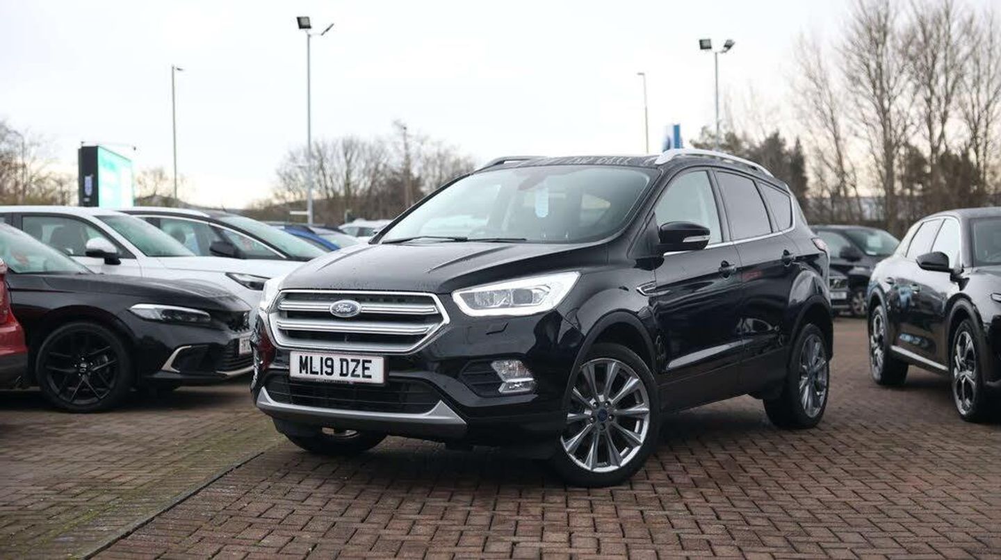Apple car play/Android Auto, EPAS, Hands free telephone, Trip computer, Auxiliary socket for external device, Remote audio controls on steering wheel, USB connection, Auto dimming rear view mirror, Bi-Xenon headlights with dynamic bending, active beam shape plus LED rear lamps and headlight washer jets, Body colour bumpers, Body colour rear spoiler, Electric panoramic glass sunroof, Electrically operated and heated door mirrors with side indicators, Electrically operated front and rear windows with global closing, Front fog lights, Front scuff plate, LED daytime running lights, Power folding door mirrors, Quickclear heated windscreen, Rain sensor windscreen wipers, Tailgate wash/wipe, Twin exhausts and rear diffuser, 10 way power adjustable drivers seat, 6 way manually adjustable passenger seat with lumbar support, 60/40 split/folding rear back and cushion, Auxiliary power socket in luggage area, Centre console with stowage tray/bottle holder/CD stowage/front and rear 12V power point, Driver seat lumbar adjustment, Driver/passenger front seatback pockets, Dual electronic automatic temperature control, Folding rear centre armrest, Footwell courtesy lights front and rear, Front floor mats, Front head restraints, Front overhead courtesy lights with theatre style dimming and delay, Front/rear reading lights, Full leather upholstery, Heated front seats, Isofix system on outer rear seats, Leather steering wheel and gear knob, Multi-colour ambient interior lighting, Reach + rake adjustable steering column, Rear floor mats, Rear head restraints, Sports style front seats, Stowage unit in upper instrument panel, Tie down hooks, Tonneau cover, Variable intensity instrument illumination, Appearance pack - Kuga, 3 point seatbelts on all 3 rear seats, ABS/EBD, Airbags - front driver/passenger, front and rear curtain, Drivers knee airbag, EBA, Electric traction assist system, Electronic Stability Programme, Front passenger airbag deactivation switch, Hill start assist, Intelligent Protection System (IPS), Tyre pressure monitoring system, Immobiliser, Keyless entry system with handsfree boot opening + electric power tailgate, Keyless start with 'Ford Power' starter button, Locking wheel nuts, MyKey system, Remote central locking, Thatcham Cat.1 alarm, 19" 10 spoke polished paint alloy wheels, Mini steel spare wheel