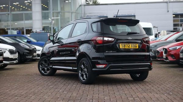 The Ford EcoSport 1.0 EcoBoost 125 ST-Line perfectly balances compact practicality with dynamic flair. Powered by Fords award-winning 1.0-litre EcoBoost engine, it delivers punchy performance with impressive efficiency ideal for both urban drives and weekend getaways. The sports suspension and ST-Line body styling give it a confident, athletic stance, while black detailing, 17-inch alloys, and LED lighting complete the look. Step inside and youll find a cabin that feels surprisingly premium. Neosuede and Sensico leather upholstery, red contrast stitching, stainless steel pedals, and ambient lighting all set a sporty tone. The 8-inch Ford SYNC 3 touchscreen with navigation, Apple CarPlay and Android Auto keeps you seamlessly connected, and FordPass Connect adds live traffic updates and remote features through your smartphone. Everyday comfort is built in with automatic headlights, rain-sensing wipers, climate control, and a quick-clear heated windscreen for frosty mornings. The variable-height boot floor and clever storage spaces make it practical too whether youre packing for a road trip or just the weekly shop. Safety is a strong suit, featuring Pre-Collision Assist with AEB, traffic sign recognition, lane-keeping technology, and a full suite of airbags. Rear parking sensors and a reversing camera make city parking effortless. Stylish, connected, and fun to drive the EcoSport ST-Line proves that small SUVs can have big personality.-The Ford EcoSport 1.0 EcoBoost 125 ST-Line perfectly balances compact practicality with dynamic flair. Powered by Fords award-winning 1.0-litre EcoBoost engine, it delivers punchy performance with impressive efficiency ideal for both urban drives and weekend getaways. The sports suspension and ST-Line body styling give it a confident, athletic stance, while black detailing, 17-inch alloys, and LED lighting complete the look. Step inside and youll find a cabin that feels surprisingly premium. Neosuede and Sensico leather upholstery, red contrast stitching, stainless steel pedals, and ambient lighting all set a sporty tone. The 8-inch Ford SYNC 3 touchscreen with navigation, Apple CarPlay and Android Auto keeps you seamlessly connected, and FordPass Connect adds live traffic updates and remote features through your smartphone. Everyday comfort is built in with automatic headlights, rain-sensing wipers, climate control, and a quick-clear heated windscreen for frosty mornings. The variable-height boot floor and clever storage spaces make it practical too whether youre packing for a road trip or just the weekly shop. Safety is a strong suit, featuring Pre-Collision Assist with AEB, traffic sign recognition, lane-keeping technology, and a full suite of airbags. Rear parking sensors and a reversing camera make city parking effortless. Stylish, connected, and fun to drive the EcoSport ST-Line proves that small SUVs can have big personality.
