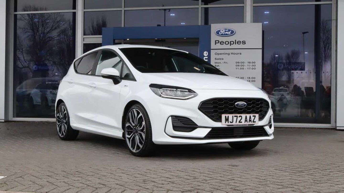 This 2022 Ford Fiesta ST Line X Edition offers an exceptional blend of sporty design and everyday practicality. Powered by an efficient 1.0 litre petrol engine, this Euro 6 compliant model boasts impressive fuel economy, achieving up to 58 miles per gallon. The ST Line X Edition trim ensures a well equipped interior and exterior, reflecting Ford's commitment to delivering a refined driving experience. Experience the responsive performance of this Fiesta, with its ability to accelerate from 0 to 62 miles per hour in just 9.4 seconds. This quick acceleration, combined with its low CO2 emissions, demonstrates how this vehicle offers a more engaging and environmentally conscious drive compared to many others in its class. The 2022 registration year means you are acquiring a modern and capable hatchback designed for the demands of contemporary driving.-This 2022 Ford Fiesta ST Line X Edition offers an exceptional blend of sporty design and everyday practicality. Powered by an efficient 1.0 litre petrol engine, this Euro 6 compliant model boasts impressive fuel economy, achieving up to 58 miles per gallon. The ST Line X Edition trim ensures a well equipped interior and exterior, reflecting Ford's commitment to delivering a refined driving experience. Experience the responsive performance of this Fiesta, with its ability to accelerate from 0 to 62 miles per hour in just 9.4 seconds. This quick acceleration, combined with its low CO2 emissions, demonstrates how this vehicle offers a more engaging and environmentally conscious drive compared to many others in its class. The 2022 registration year means you are acquiring a modern and capable hatchback designed for the demands of contemporary driving.