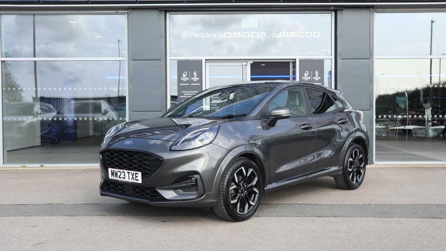 The 2023 Ford Puma 1.0 EcoBoost Hybrid mHEV ST-Line X 5dr DCT delivers a dynamic driving experience combined with cutting-edge hybrid technology. With its sleek, sporty design, advanced features, and hybrid powertrain, the Puma is the ideal compact SUV for those who crave both style and substance. Whether you're navigating the city or embarking on a weekend adventure, the Ford Puma ST-Line X is ready for any challenge. Key Features: EcoBoost Hybrid Powertrain: At the heart of the Puma is the 1.0 EcoBoost Hybrid mHEV engine, offering a perfect balance of power and fuel efficiency. This 125 PS engine, paired with a mild-hybrid system (mHEV), uses a small electric motor to assist the petrol engine, providing smooth power delivery and enhanced fuel economy. Enjoy greater performance and lower emissions, whether you're in town or out on the open road. Efficient & Dynamic Performance: The 6-speed DCT (Dual-Clutch Transmission) ensures seamless gear changes, delivering a smooth, responsive driving experience. With EcoBoost technology, you'll enjoy a punchy performance without compromising on fuel efficiency. The 1.0 EcoBoost engine is designed to offer both spirited acceleration and impressive miles per gallon, making every journey a breeze. Sporty ST-Line X Styling: The ST-Line X trim enhances the Puma's sporty appearance with distinctive features such as black roof rails, ST-Line body styling kit, 17-inch alloy wheels, and black exterior accents. The LED headlights and rear privacy glass give it a sharp, modern edge, making sure you stand out wherever you go. Interior Features & Comfort: Inside, the ST-Line X is equipped with a premium, driver-focused interior. The part-leather sports seats offer superb comfort and support, while the ST-Line steering wheel and sports pedals provide a more engaging driving experience. The SYNC 3 infotainment system with Apple CarPlay and Android Auto lets you stay connected while on the move. The cabin also features climate control and keyless entry, ensuring convenience at every turn. Technology & Connectivity: The Puma is packed with smart technology, including the Ford Co-Pilot360 suite of safety features such as Lane Keeping Aid, Adaptive Cruise Control, and Pre-Collision Assist. The 12.3-inch digital instrument cluster provides customisable driving data, while the 8-inch touchscreen offers easy access to navigation, media, and apps. Plus, with Bluetooth and USB connectivity, staying connected has never been easier. Practicality: Despite its compact size, the Ford Puma offers ample boot space with the innovative MegaBox feature a deep, waterproof storage compartment that's perfect for stowing gear, sports equipment, or anything else you need. The cabin also offers plenty of room for passengers, making it an excellent choice for families or those who need extra practicality without sacrificing style. Safety Features: Ford's commitment to safety is evident in the Puma, with a range of advanced driver-assistance systems designed to keep you protected on the road. Features such as blind-spot monitoring, automatic emergency braking, and rear parking sensors provide additional reassurance, making the Puma an ideal choice for urban and long-distance driving alike. Why Choose Peoples Falkirk? At Peoples Falkirk, we offer more than just cars; we provide an experience. We understand that buying a new car is a big decision, and our expert team is here to guide you every step of the way. Whether you're a Ford enthusiast or a first-time buyer, youll enjoy a seamless and transparent purchasing experience at Peoples Falkirk. Ready to Drive the 2023 Ford Puma 1.0 EcoBoost Hybrid? Dont miss out on the opportunity to own this exciting, eco-friendly, and stylish 2023 Ford Puma 1.0 EcoBoost Hybrid mHEV ST-Line X 5dr DCT. Book your test drive at Peoples Falkirk today and experience the thrill of driving Fords latest hybrid innovation.-The 2023 Ford Puma 1.0 EcoBoost Hybrid mHEV ST-Line X 5dr DCT delivers a dynamic driving experience combined with cutting-edge hybrid technology. With its sleek, sporty design, advanced features, and hybrid powertrain, the Puma is the ideal compact SUV for those who crave both style and substance. Whether you're navigating the city or embarking on a weekend adventure, the Ford Puma ST-Line X is ready for any challenge. Key Features: EcoBoost Hybrid Powertrain: At the heart of the Puma is the 1.0 EcoBoost Hybrid mHEV engine, offering a perfect balance of power and fuel efficiency. This 125 PS engine, paired with a mild-hybrid system (mHEV), uses a small electric motor to assist the petrol engine, providing smooth power delivery and enhanced fuel economy. Enjoy greater performance and lower emissions, whether you're in town or out on the open road. Efficient & Dynamic Performance: The 6-speed DCT (Dual-Clutch Transmission) ensures seamless gear changes, delivering a smooth, responsive driving experience. With EcoBoost technology, you'll enjoy a punchy performance without compromising on fuel efficiency. The 1.0 EcoBoost engine is designed to offer both spirited acceleration and impressive miles per gallon, making every journey a breeze. Sporty ST-Line X Styling: The ST-Line X trim enhances the Puma's sporty appearance with distinctive features such as black roof rails, ST-Line body styling kit, 17-inch alloy wheels, and black exterior accents. The LED headlights and rear privacy glass give it a sharp, modern edge, making sure you stand out wherever you go. Interior Features & Comfort: Inside, the ST-Line X is equipped with a premium, driver-focused interior. The part-leather sports seats offer superb comfort and support, while the ST-Line steering wheel and sports pedals provide a more engaging driving experience. The SYNC 3 infotainment system with Apple CarPlay and Android Auto lets you stay connected while on the move. The cabin also features climate control and keyless entry, ensuring convenience at every turn. Technology & Connectivity: The Pu
