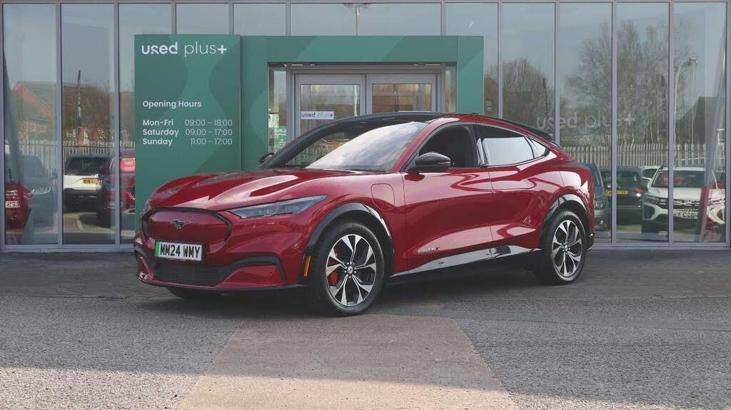 Drive electric and go anywhere all our EVs are fully compliant with Low Emission Zones (LEZ). With only 5121 miles on the clock, this 2024 Ford Mustang Mach-E is practically brand new. As an all-electric, four-wheel drive Extended Range Premium variant, this Mustang Mach-E combines performance with eco-conscious driving. The Premium trim adds a touch of luxury and convenience to your journeys. Parking is made simple with front and rear parking sensors, including parking assistance, and a 360-degree camera. The E-Latch keyless entry system, complete with B-pillar keypad access, ensures ease of entry and security. The Mustang Mach-E's impressive battery provides a maximum range of 341 miles when new, meaning you can embark on longer trips with confidence. Charging at home using a 7kW charger takes approximately 14 hours and 36 minutes, perfect for overnight replenishment. For those needing a quicker charge while on the move, public charging can take the battery from empty to 80% in just 51 minutes. Acceleration from 0-62mph in 5.8 seconds demonstrates that this vehicle offers thrilling performance, setting it apart from other similar vehicles.-Drive electric and go anywhere all our EVs are fully compliant with Low Emission Zones (LEZ). With only 5121 miles on the clock, this 2024 Ford Mustang Mach-E is practically brand new. As an all-electric, four-wheel drive Extended Range Premium variant, this Mustang Mach-E combines performance with eco-conscious driving. The Premium trim adds a touch of luxury and convenience to your journeys. Parking is made simple with front and rear parking sensors, including parking assistance, and a 360-degree camera. The E-Latch keyless entry system, complete with B-pillar keypad access, ensures ease of entry and security. The Mustang Mach-E's impressive battery provides a maximum range of 341 miles when new, meaning you can embark on longer trips with confidence. Charging at home using a 7kW charger takes approximately 14 hours and 36 minutes, perfect for overnight replenishment. For those needing a quicker charge while on the move, public charging can take the battery from empty to 80% in just 51 minutes. Acceleration from 0-62mph in 5.8 seconds demonstrates that this vehicle offers thrilling performance, setting it apart from other similar vehicles.