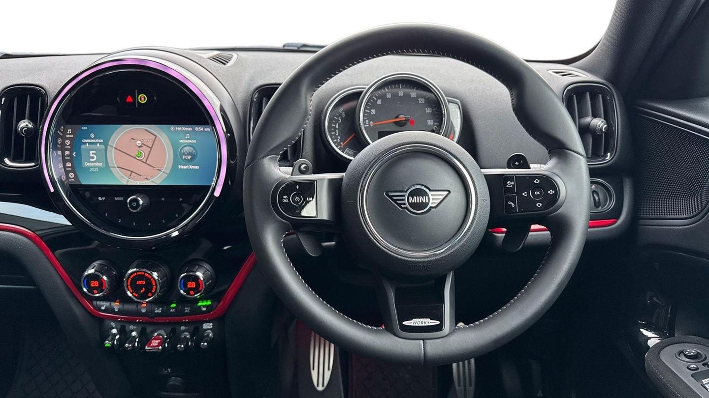 Reserve Online,Premium Plus Pack,19" JCW Circuit Spoke Alloys,Panoramic Glass Sunroof,Adaptive LED Headlights,Black Roof Rails,Piano Black JCW Interior Trim,Darkened Rear Glass,Driving Assistant,Reversing Camera,Electric Folding Door Mirrors,Comfort Access,Black Roof And Mirrors,Front Armrest,Front Heated Seats,Apple Car Play