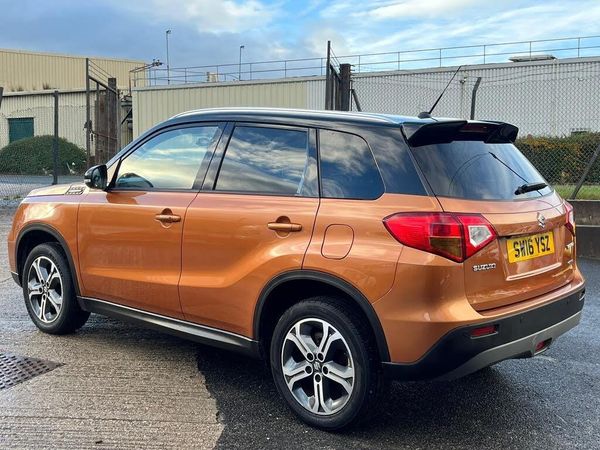 This 2016 Suzuki Vitara SZ5 is a well maintained example of this popular compact SUV. It features a responsive 1.6 litre petrol engine paired with a capable four wheel drive system, making it suitable for a variety of driving conditions. The SZ5 trim level ensures you benefit from a host of convenient features, including automatic air conditioning with climate control, keyless entry and start for effortless access, and automatic headlights that illuminate the road ahead without you needing to think about it. Maneuvering and parking are made simpler with the integrated rear parking camera, and for added peace of mind on longer journeys, adaptive cruise control helps maintain a set speed and distance from the vehicle in front.This particular Vitara stands out with its impressive fuel economy, achieving up to 50 miles per gallon, which is excellent for its class. Furthermore, its Euro 6 emission classification and low CO2 emissions indicate a more environmentally conscious choice. The vehicle also benefits from a low insurance group, suggesting that running costs could be more affordable compared to similar models. These factors combined highlight how this Suzuki Vitara offers a compelling blend of practicality, efficiency, and technology.-1YR WRNTY+AA BREAKDOWN
