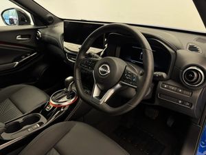 12.3" full colour TFT screen combimeter,Drive modes select (Eco, normal and sport),Emergency and breakdown call,Front parking sensor,Idle start/stop system,Intelligent driver alert system,Intelligent lane intervention,Lane departure warning system,Nissan connect 12.3" touch screen entertainment system,Nissan connect nav with TomTom traffic,Nissan connect services,Outside temperature sensor,Power Steering,Rear parking sensor,Stop/start button,Traffic sign recognition,Trip computer,Voice recognition,WiFi connectivity,Wireless Apple CarPlay and Google Android auto,Wireless Smartphone charger,10 Bose speakers 6 speakers and 2 headrest speakers for driver/passenger seats,2 X Rear console USB port,Bluetooth system, USB, Aux-in and 12V socket,Bose personal sound stage control,DAB Digital radio,Auto dimming frameless rear view mirror,Automatic hazard signal with emergency stop signal,Body colour door handles,Electrically adjustable door mirrors with integrated indicators,Follow me home headlights,Front and rear electric window with one touch driver window,Heated and auto folding door mirrors,High beam assist,LED 3rd brake light,LED daytime running lights,LED front fog lights,LED headlamps,LED rear fog lamp,LED rear lamps,One touch passenger window,Rain sensor windscreen wipers,Rear privacy glass,Rear side wing doors,Rear wiper,Roof spoiler,Shark fin roof antenna in solid Black,Three blink turn signal,3 height adjustable rear headrests,3 seat bench in 2nd row,60/40 split folding rear seat,Automatic climate control,Card holder on driver sunvisor,Door ambient lighting,Driver seat back pocket,Driver side rear coat hanger,Driver/passenger sunvisors and vanity mirrors,Front and rear cabin lights,Front armrest,Front door pockets with bottle holders,Front head restraints,Front/rear passenger grab handles,Gear console ambient circle lighting,Height adjustable driver's seat,Internal chrome door handles,Leather gearshift knob,Luggage board,Luggage space lighting,Monoform sporty seats,Multifunction steering wheel,Passenger seat back pocket,Rear door bottle holders,Single front passenger seat,Smooth synthetic leather steering wheel,Steering wheel mounted gearshift paddles,Synthetic leather kneepad,Synthetic leather upholstery,Telescopic steering wheel adjustment,Two cupholders in front centre console,Two rear isofix child seat anchorage points with top tether,Welcome light and console tray ambient lighting,Heat pack with height adjustable passenger seats - Juke,ProPilot pack - Juke Auto,ABS with EBD and brake assist,Active ride control,Active Trace Control,Driver and passenger airbags,Driver and passenger side airbags,Electric handbrake with auto hold function,Electronic Stability Programme (ESP),Front and rear curtain airbags,Height adjustable seatbelts,Hill start assist,Intelligent emergency braking with pedestrian and cyclist recognition,Rear door child safety locks,Seatbelt reminder for driver/front passenger and rear seats,Three 3 point rear seatbelts,Traction control,Tyre pressure monitoring system,VDC Dynamic Vehicle Control,Alarm,Immobiliser,Intelligent key and start push button with walk away lock and approach unlock functions,Remote central locking,19" Alloy wheels,Tyre puncture repair kit