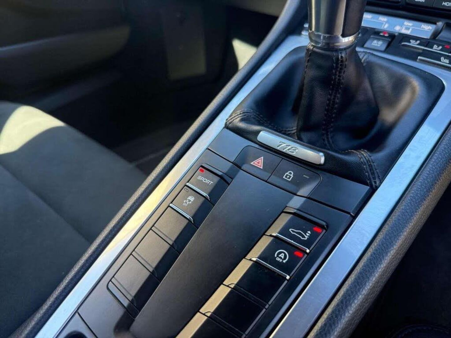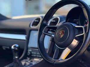 Features: 12-Volt Socket in Passenger Footwell,12-Volt Sockets in Passenger Footwell and Centre Console Storage Compartment,18in Alloy Wheels - Cayman,718 Logo on Gear lever,Adjustable Fan with Air Recirculation and Defroster Functions,Air Conditioning with Integrated Active Carbon Filter,Alarm System,Alarm System with Interior Surveillance,Anti-Theft Wheel Bolts,Ascending Centre Console with an Uncovered Storage Compartment and a Closed Storage Compartment,Automatic Deploying Rear Wing,Automatic Headlight Activation including Welcome Home Lighting,Automatically Extending Rear Spoiler,Bi-Xenon Headlights with Integrated LED Daytime Running Lights,Brake Calipers - Black,Clothes Hooks on Seat Backrests,Dashboard Trim Strips and Centre Console Trim in Silver Colour - High-Gloss,Digital Displays for Vehicle Speed - Chosen Gear - Odometer - Trip Odometer and Clock,Digital Displays for Vehicle Speed - Chosen Gear - Odometer -Trip Meter and Time,Digital Radio,Door Sill Guards - Model Designation Logo,Electric Windows with One-Touch Operation and Door Seal Protection Function,Electrically Adjustable Heated Exterior Mirrors on Door Waist Rails - Aspherical on Drivers Side,Electrically Controlled Parking Brake,Electromechanical Direct Steering with Variable Steering Ratio and Steering Pulse Generator,Elevated Centre Console with an Uncovered Storage Compartment and a Closed Storage Compartment,Engine Immobiliser with in-Key Transponder - Central Locking with Remote Control,Engine Water Cooled with Thermal Management,Floor Mats,Full Size Airbags for Driver and Front Passenger,Green Tinted Heat-Insulating Glass,Heated Rear Screen,Instrument Cluster with Central Rev Counter and High Resolution 4.6inch Colour Display,Instrument Dials and Rev Counter in Black,Integrated 4G-LTE Compatible SIM,Intelligent Lightweight in Aluminium-Steel-Composite Construction,LED Reading Lights - Orientation Lighting and Ignition Lock - Additionally Luggage Compartment and Glove Box Lighting,LED Reading Lights Orientation Ignition Lock - Additionally Luggage Compartment and Glove Compartment Lighting,LED Taillights and Integral 4-Point Brake Lights and Reversing Lights,Lightweight Spring-Strut Axle Front and Rear,Luggage Compartments at Front and Rear,Park Assist - Front and Rear,PCM - Porsche Communication Management - Include Navigation,PORSCHE Logo on Accent Strip and Model Designation on Rear Apron in Silver Colour - High Gloss,Porsche Side Impact Protection - POSIP,Porsche Stability Management - PSM with ABS with Advance Brake Functions,Remote Central Locking with Immobiliser,Roof Lining in Fabric,Seat Heating,Separate Auxiliary Lights in the Front End with LED Indicators and Position Lights,Side Air Intake with 2 Grilles in Black,Side Window Trims in Black,Smooth-Finish Leather on Steering Wheel Rim and Gear Lever,Sound Package Plus,SPORT Button to Activate Dynamic Driving Setting for Engine,Sports Seats with Electric Backrest Adjustment and Manual Fore-Aft and Height Adjustment,Sports Steering Wheel - Diameter 375mm with Manual Fore-Aft and Height Adjustment,Storage Compartment in Each Door,Twin-Tract Sports Exhaust System with Central Tailpipe in Stainless Steel,Two Individual Cup Holders - Integrated into Dashboard Trim Strip,Tyre Pressure Monitoring System - TPM,Wide Opening Rear Hatch with Heated Screen,Windscreen Washer System with Two Wiper Speeds and Washer Jets,Windscreen with Darker Grey Tint at the Top to Reduce Glare,Windscreen with Top-Tint,19in Alloy Wheels - Cayman S,Park Assist - Rear,ParkAssist - Front and Rear with Reversing Camera