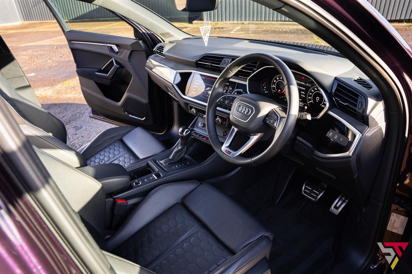 Inside, this Vorsprung is just as impressive. The Fine Nappa RS Super Sport seats with honeycomb stitching offer exceptional comfort and support, paired with carbon-fibre inlays, Alcantara accents and multi-colour ambient lighting that creates a distinctive RS atmosphere, day or night. Electrically adjustable seats with lumbar support, illuminated RSQ3 door sills and RS puddle lights complete a cabin that feels both premium and authentically performance-focused.