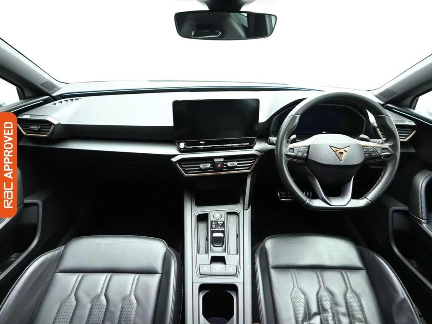 12V Power Supply in Centre Console,Full Link Smartphone Integration,Media System Plus with Navigation,Seven Speakers,USB Type C x4 - x2 Front and x2 Rear,Wireless Phone Charger,19in Alloy Wheels - Aerodynamic Machined Sport Black and Silver,CUPRA Black Brake Calipers,CUPRA Sports Bumpers,Dark Tinted Rear Windows,Door Mirrors Electrically Adjustable - Folding and Heated,Electric Front and Rear Windows,LED Rear Fog Lamps,Lockable Tailgate,Rear Diffuser with Twin Exhaust Pipe on Each Side,Space Saver Spare Wheel - in Lieu of Standard Tyre Repair Kit,ABS - Anti-Lock Braking System,Anti-Theft Alarm System - Interior Monitoring - Backup Horn and Towing Protection,CUPRA Connect,Driver and Front Passenger Airbags with Front Passenger Airbag Deactivation - Front Side and Curtain Airbag,Electronic Parking Brake,Extended Safety System,Front Assist - Forward Collision Warning Braking Reaction to Vehicles - Pedestrians and Cyclists,Front and Rear Seat Belt Reminders,ISOFIX Points in Outer Rear Seats with Top Tether Anchorage Points,KESSY Advanced - Keyless Start - Keyless Entry,Lane Assist,Auto Dimming Rear View Mirror,CUPRA Dynamic and Comfort Pack,CUPRA Leather Flat Bottomed - Heated - Perforated Steering Wheel with Gearshift Paddles,Chrome and Copper Detailing,Five Headrests,Folding Boot Cover,Front Centre Armrest,Front and Rear Reading Lights - Four,Headlining - Black,Heated Front Seats,Illuminated Front Door Sill,Illuminated Sunvisor with Mirror,Interior Ambient Lighting,Interior Lighting,Interior Wraparound Lighting,Power Lumbar Adjustment on Drivers Side - Manual on Passenger Side,Powered Driver Seat with Memory and Manual Height Adjustment for Passenger,Rain Sensing Wipers,Rear Bench Seats with 60-40 Split and Armrest,Sports Bucket Seats,Sports Pedal,Storage Pockets on Rear of Front Seats,Three Zone Climate Control,Brake Control System - ESC and Brake Booster,Power Steering,CUPRA Drive Profile,Cruise Control with Speed Limiter,Digital Cockpit,Park Assist - including Front and Rear Sensors,Rear View Camera,Tiredness Recognition System,Tyre Pressure Monitoring System,LED Front Fog Lamps with Cornering Function,LED Headlight with Dynamic Turn Signals,Separate Daytime Running Lights with Automatic Headlight Control and Coming Home Feature