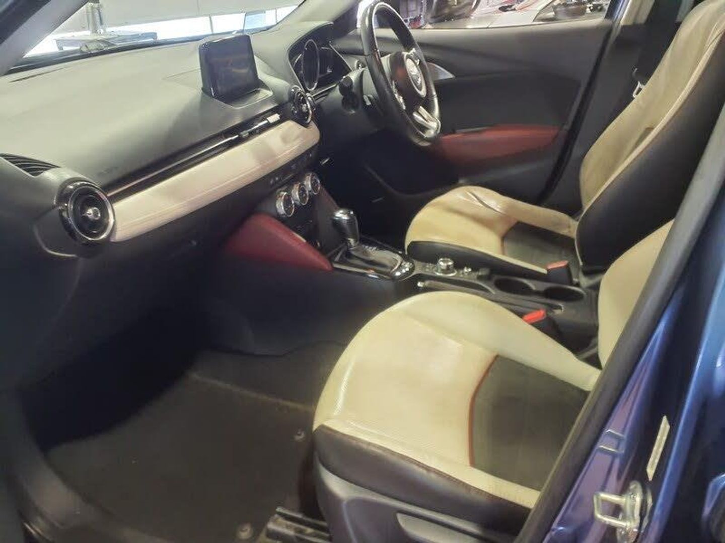 This 2018 Mazda CX-3 SKYACTIV-G Sport Nav offers an exceptional blend of style and practicality, making it a standout choice. Powered by a responsive 2.0 litre petrol engine and meeting Euro 6 emissions standards, this Sport Nav model is equipped with a comprehensive Safety Pack, including Blind Spot Assistance, to enhance your driving confidence. Inside, you'll find luxurious Leather Lux Suede upholstery featuring a sophisticated half stone leather and half black suede combination with striking red piping. Comfort is further assured with front heated seats, while the LED headlights with daytime running lights and auto levelling ensure excellent visibility. Parking is made easier with the integrated reversing camera. Cruise control Front parking sensor Heated front seat Rear parking sensor, Satnav Air conditioning Climate control Electrically adjustable drivers seat Partial leather seat trim Alloy wheels This Mazda CX-3 is designed to be economical and efficient, boasting an impressive fuel economy, low CO2 emissions and low insurance group rating indicate that running costs are kept to a minimum, offering a more affordable ownership experience compared to many other vehicles in its class. These highlights demonstrate the thoughtful engineering and value this CX-3 provides.