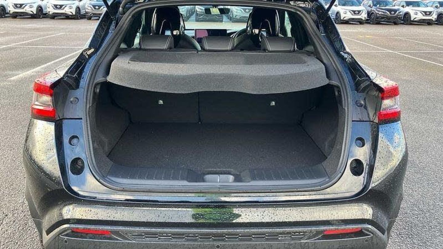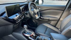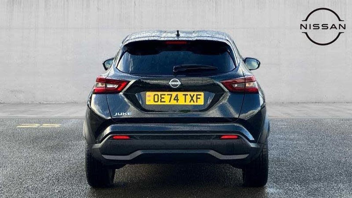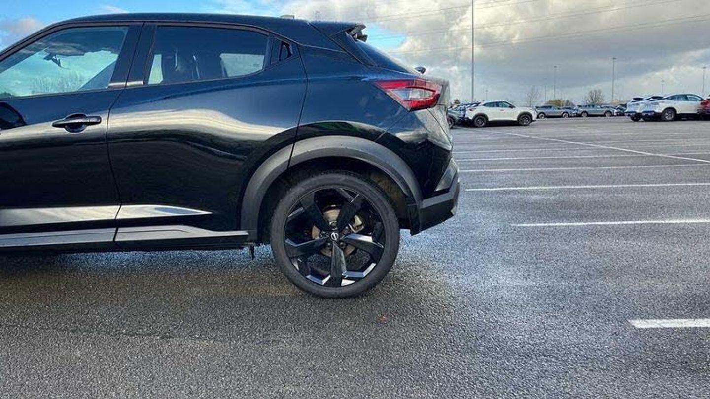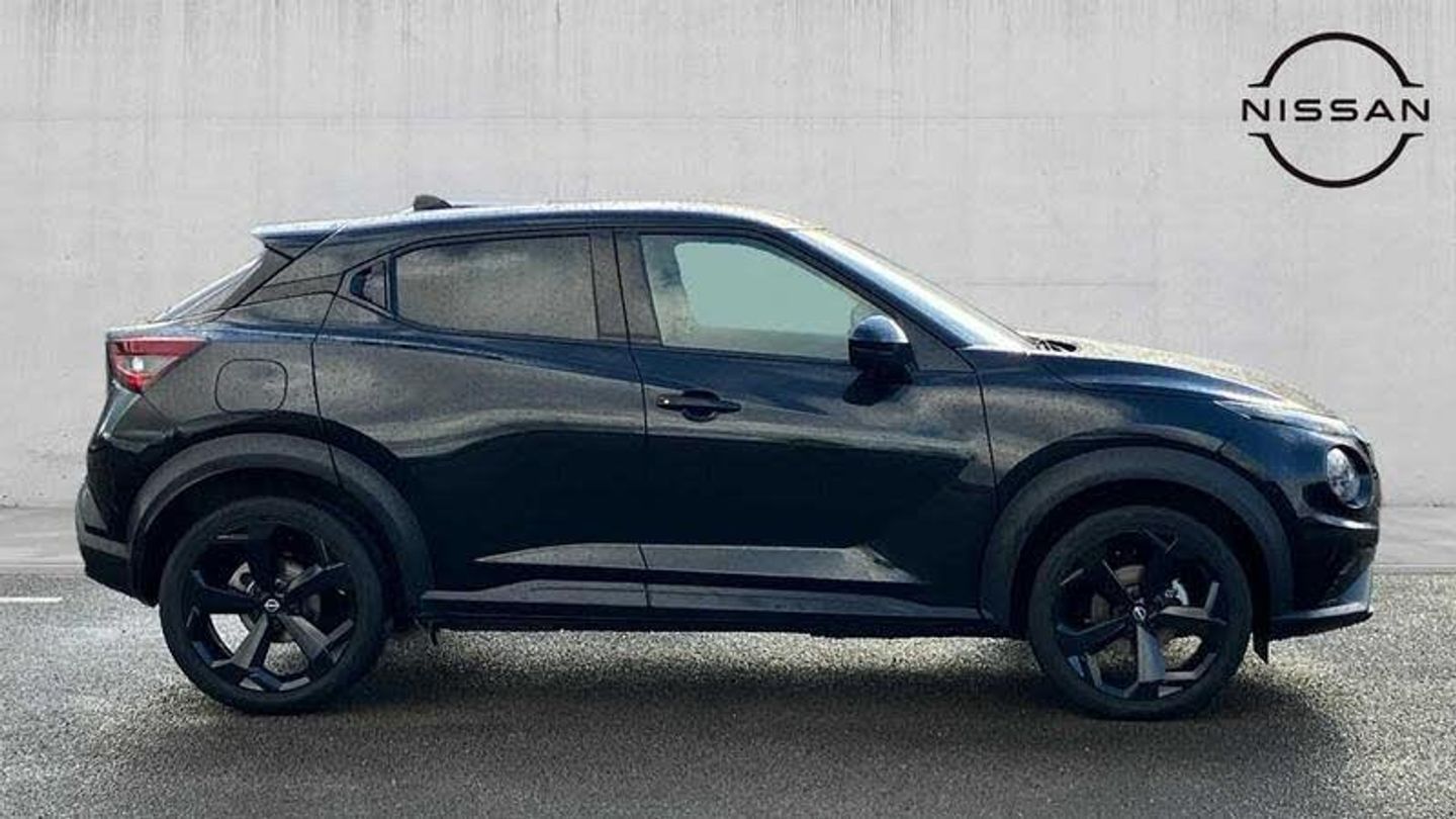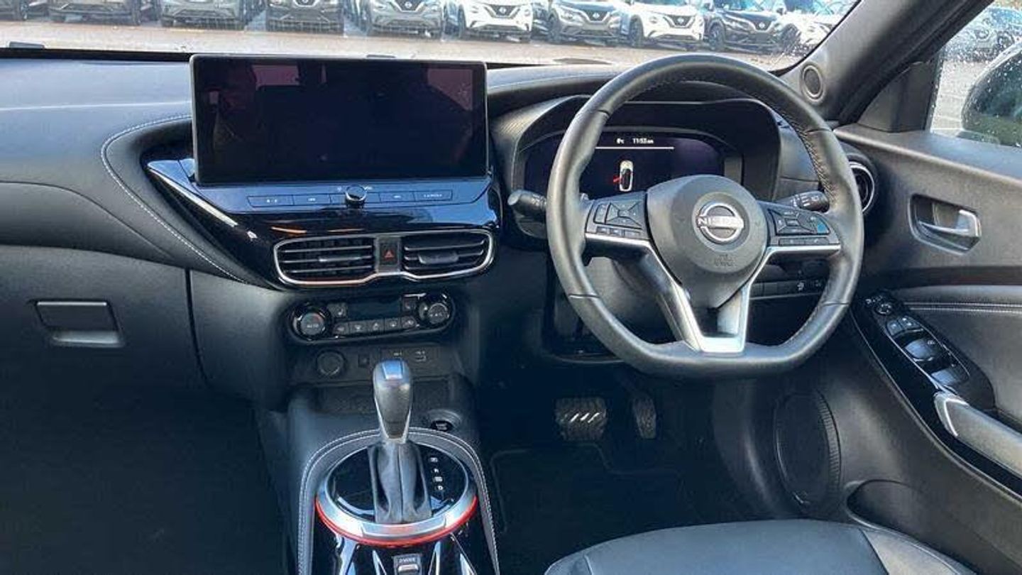 Exterior Features, Pearlescent paint, Safety, Pearl black door mirrors, Paint - Pearlescent, Pearl - Black, Trim - Leather, Synthetic leather - Black, Exterior Features, Front and rear electric window with one touch driver window, One touch passenger window, Rain sensor windscreen wipers, Rear privacy glass, Rear wiper, Body colour door handles, Rear side wing doors, Roof spoiler, Shark fin roof antenna in solid Black, Automatic hazard signal with emergency stop signal, Follow me home headlights, High beam assist, LED 3rd brake light, LED daytime running lights, LED front fog lights, LED headlamps, LED rear fog lamp, LED rear lamps, Three blink turn signal, Safety, ABS with EBD and brake assist, Electric handbrake with auto hold function, Electronic Stability Programme (ESP), Hill start assist, Intelligent emergency braking with pedestrian and cyclist recognition, Traction control, VDC Dynamic Vehicle Control, Drive modes select (Eco, normal and sport), Front parking sensor, Intelligent driver alert system, Intelligent lane intervention, Lane departure warning system, Power Steering, Rear parking sensor, Traffic sign recognition, Auto dimming frameless rear view mirror, Electrically adjustable door mirrors with integrated indicators, Heated and auto folding door mirrors, Active ride control, Active Trace Control, Driver and passenger airbags, Driver and passenger side airbags, Front and rear curtain airbags, Height adjustable seatbelts, Rear door child safety locks, Seatbelt reminder for driver/front passenger and rear seats, Three 3 point rear seatbelts, Tyre pressure monitoring system, Audio / Communications, Voice recognition, WiFi connectivity, Wireless Apple CarPlay and Google Android auto, Wireless Smartphone charger, 10 Bose speakers 6 speakers and 2 headrest speakers for driver/passenger seats, 2 X Rear console USB port, Bluetooth system, USB, Aux-in and 12V socket, Bose personal sound stage control, DAB Digital radio, Driver Convenience, Idle start/stop system, Stop/start button, Miscellaneous, 12.3 inch full colour TFT screen combimeter, Emergency and breakdown call, Nissan connect 12.3 inch touch screen entertainment system, Nissan connect nav with TomTom traffic, Nissan connect services, Outside temperature sensor, Trip computer, Interior Features, Automatic climate control, Card holder on driver sunvisor, Driver side rear coat hanger, Front armrest, Front door pockets with bottle holders, Front/rear passenger grab handles, Internal chrome door handles, Leather gearshift knob, Luggage board, Multifunction steering wheel, Rear door bottle holders, Smooth synthetic leather steering wheel, Steering wheel mounted gearshift paddles, Synthetic leather kneepad, Synthetic leather upholstery, Telescopic steering wheel adjustment, Two cupholders in front centre console, Door ambient lighting, Front and rear cabin lights, Gear console ambient circle lighting, Luggage space lighting, Welcome light and console tray ambient lighting, Driver/passenger sunvisors and vanity mirrors, Packs, Heat pack with height adjustable passenger seats - Juke, ProPilot pack - Juke Auto, Trim, 3 height adjustable rear headrests, 3 seat bench in 2nd row, 60/40 split folding rear seat, Driver seat back pocket, Front head restraints, Height adjustable driver's seat, Monoform sporty seats, Passenger seat back pocket, Single front passenger seat, Two rear isofix child seat anchorage points with top tether, Security, Alarm, Immobiliser, Intelligent key and start push button with walk away lock and approach unlock functions, Remote central locking, Wheels, 19 inch Alloy wheels, Tyre puncture repair kit