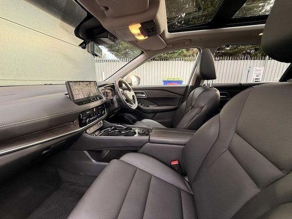 Exterior Features, Metallic paint, Paint - Metallic, Metallic - Brilliant silver, Trim - Leather, Synthetic leather monoform - Black, Exterior Features, Auto rear wiper when reversing, One touch front and rear electric windows with remote opening and closing, Rain sensing wipers, Rear privacy glass, Splash free wipers, Super UV and infrared cut glass, Thermaclear heated windscreen, Body coloured door handles, Bodyside mouldings, Chrome side window finisher, e-4ORCE badging, e-POWER badging, Electric sunroof/sunshade, Partially body coloured bumpers, Rear roof spoiler, Rear side wing doors, Rear styling plate, Roof rails, Shark fin antenna, Follow me home headlights, High beam assist, Intelligent auto headlights, LED 3rd brake light, LED daytime running lights, LED front fog lights, LED headlights with adaptive driving beam, LED rear lights, Rear reversing light (bulb lighting), Three blink turn signal, Safety, ABS with EBD and brake assist, Active brake limited slip, Auto hold function, Electronic parking brake, Hill start assist, Intelligent blind spot intervention, Intelligent front emergency braking with pedestrian, cyclist recognition and junction assist, Intelligent rear automatic braking, Vehicle dynamic control, Blind spot warning, Drive assist custom mode, Drive modes (sport, normal, eco, snow, off-road), Driver drowsiness and attention warning, Electric speed sensitive power steering, Event data recorder, Front and rear parking sensors, Intelligent around view monitor, Intelligent Cruise control (ICC), Intelligent driver alert system, Intelligent forward collision warning, Intelligent lane departure warning, Intelligent lane intervention, Intelligent lane keep assist, Lane departure prevention, Maximum speed limiter, Moving object detection, Propilot assist with Navi-Link, ProPilot park, Rear cross traffic alert, Rear view camera, Reversing detection, Traffic jam pilot, Traffic sign recognition with legal speed adjustment, Body colour mirror caps, Electric auto folding door mirrors, Electrically adjustable and heated door mirrors, Smart rear view mirror with auto dimming, 3rd row seat belts reminder, 3x3 point rear seatbelt pretensioners + load limiters, Child locks on rear doors, Curtain and front side, far side airbags, Driver and passenger airbags, Driver, passenger and 2nd row rear seat belt reminder, Front seatbelt pretensioners + load limiters, Height adjustable front seatbelts, Tyre pressure monitoring system, Audio / Communications, Android auto wireless, Wireless apple carplay, Wireless charging pad, 6 speakers, AM/FM audio system with DAB, Bluetooth audio streaming, Front USB connections (Type-A and Type-C), Rear USB charging only ports 2 Type-C, Driver Convenience, Advanced 10.8 inch head up display, Hands free power tailgate, Idle stop/start system, Push button starter, Miscellaneous, e-Pedal step, Emergency and breakdown call, Full Digital 12.3 inch TFT Digital Combimeter, Google maps services - search, weather, 3D maps and Google street view, Nissan connect 12.3 inch touchscreen infotainment system, Nissan connect nav with TomTom traffic, Remote control services - door locks, lights, horn and car locator, Telematics - notifications and connectivity services, Trip computer, Virtual personal assistant and firmware over the air capability, Interior Features, Tri zone automatic climate control with pollen filter, 12v power socket in dashboard and luggage, Butteryfly console, Chrome interior door handles, Cup holders in 3rd row, Front centre console and armrest, Front cupholders, Front door with bottle holders, Heated steering wheel, Leather shift knob, Leather steering wheel, Luggage board system, Multifunction steering wheel, Rear armrest with 2 cupholders, Rear door bottle holders, Steering column mounted gear shift paddles, Synthetic leather monoform upholstery, Tilt/telescopic adjustable steering wheel, Luggage space lighting, Driver and front passenger sunvisors with illuminated vanity mirrors, Packs, S