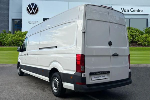 AC/Climate, Advanced Safety, Collision Detection, Cruise Control;This Volkswagen Crafter CR35 Panel Van Commerce is finished in Candy White and is powered by a 2.0 litre TDI diesel engine paired with a six speed manual transmission, delivering reliable performance for daily commercial use. The exterior is designed for everyday practicality and ease of operation, featuring automatic headlights for enhanced visibility and front and rear parking sensors that make manoeuvring and parking straightforward even in tighter spaces. The ply lined load area is accessible through the rear wing doors or the side sliding door, with an integrated step and grab handles to assist entry. Reinforced lashing rings provide secure tie down points to keep cargo safely in place during transport. The Business Pack adds electronically controlled air conditioning, while the Storage Pack includes an overhead compartment to help keep the cabin organised. Multiple USB ports are positioned throughout the cab, including a dedicated dash cam port at the top of the windscreen, alongside a wireless charging pad to keep devices powered on the move. A leather wrapped multifunction steering wheel provides easy access to key vehicle functions, while the modern digital dash delivers clear, customisable driving information directly in the driver?s line of sight. Technology is strong, centred around a 10 inch colour touchscreen featuring the Composition Colour infotainment system with DAB digital radio, Bluetooth connectivity, and Volkswagen App Connect for seamless smartphon...