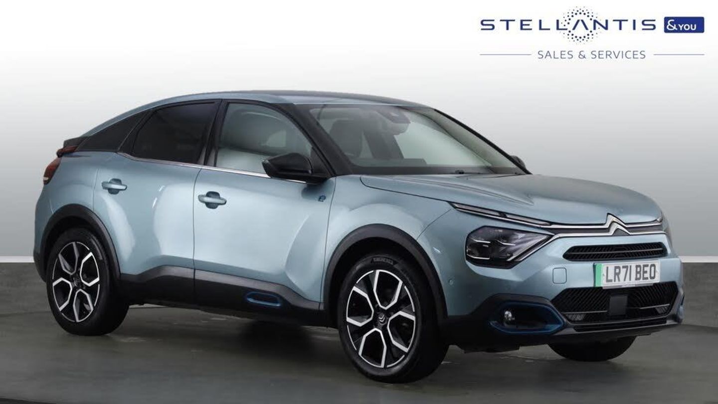 10in High Resolution Touchscreen User Interface, 5.5in Backlit Full-TFT Drivers Instrument Cluster, Citroen Connect Box with Emergency and Assistance System, Citroen Connect Nav, Row 1 - 12V Power Outlet and 1x USB Type-C Socket for Charging and Data Connection and 1x USB Type-A Socket for Charging, Row 2 - 1x USB Type-A Socket for Charging, Active Blind Spot Detection, Adaptive Cruise Control with Speed Limiter, Head-Up Display, Parking Aid - Front and Rear and Lateral, Top Rear Vision Reversing Camera, Tyre Under Inflation Indicator, 18in Alloy Wheels - Bi-Tone Crosslight Diamond Cut, Anodised Blue Colour Pack, Bumpers - Body Coloured, Compressor with Puncture Repair Kit, Electric Windows - Front and Rear, Electrically Heated and Folding Door Mirrors with Courtesy Lighting, Gloss Black Rear Skirt, Matt Black A-Pillar and Gloss Black B-Pillar, Obsidian Black Painted External Rear View Mirrors, Side Windows with Chrome Detail - Rear Window Dark Tinted, Automatic Headlight Activation with High Beam Assist, LED Daytime Running Lights in V Signature, LED Front Fog Lights with Static Cornering Function, LED Headlights, Welcome and Goodbye Lighting, Automatic Dual Zone Air Conditioning, Boot Light, City Smart Pad Support - Universal Tablet Cradle, Dashboard Tray in Front Cabin, Deluxe Leather Steering Wheel with Two Command Blocks, Driver and Passenger Sunvisor with Illuminated Vanity Mirror, Electrochrome Interior Rear View Mirror with Automatic Day-Night Switching, Front and Rear Interior Lighting - LED, Heated Steering Wheel, Height Adjustable Drivers Seat with Adjustable Lumbar Support, Height Adjustable Passengers Seat, Height and Reach Adjustable Steering Wheel, High Level Acoustic Insulation Pack, Map Pockets on Front Seat Backs, Rain Sensing Automatic Front Windscreen Wipers, Raised Central Console with Armrest with Two Cupholders, Seats Rear - Split Folding, Visio Park, 7.4kW Single-Phase Onboard Charger, Electric Power Steering, Mode 3 Charging Cable with Type 2 Connectors, Remote Temperature Pre-Conditioning, Suspension with Progressive Hydraulic Cushions - PHC, ABS - Anti-Lock Braking System, Anti-Theft Alarm - Volumetric Protection, Driver and Front Passenger Airbags, Electric Parking Brake, ESP - Electronic Stability Programme, Front Seat Belt Pretensioners, Hill Start Assist, In-Crash Braking, Keyless Entry and Start, Manual Child Locks, Manual Deactivation of Front Passenger Airbag, Post Collision Safety Brake, Remote Central Locking with Deadlocking, Row 1 and 2 Curtain Airbags, Row 1 Side Thorax Airbags, Safety Pack Plus, Seatbelt Unfastened on the Move Warning, Chevrons Cloth and Leather Effect - Grey - Black with Ultra Emerald Green Stitching