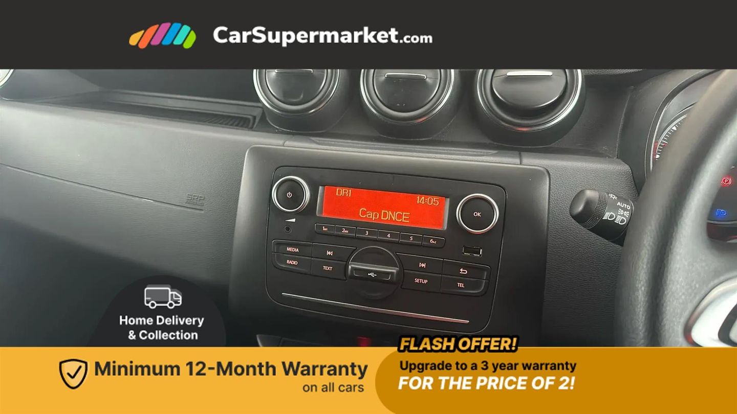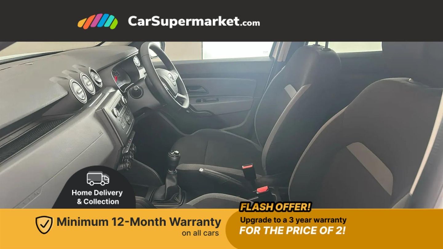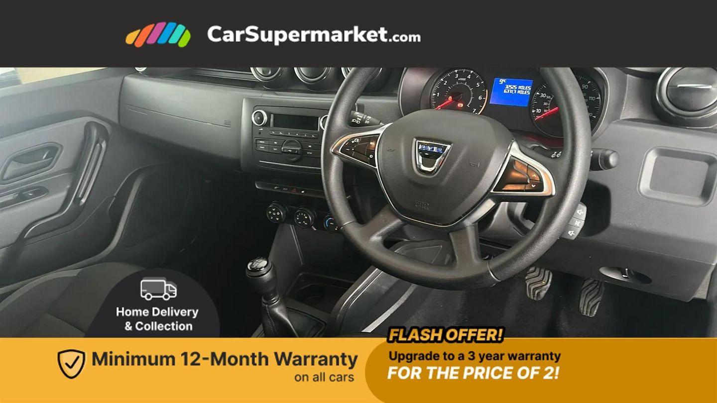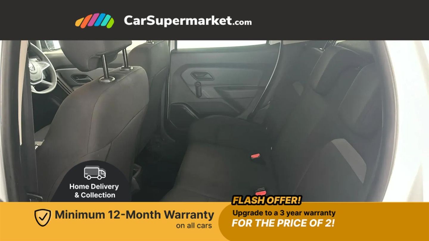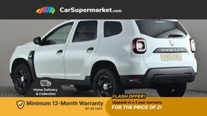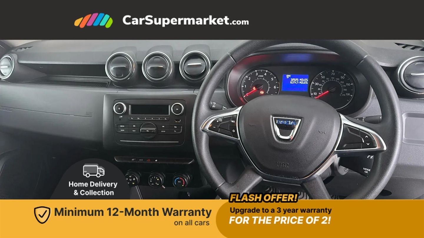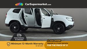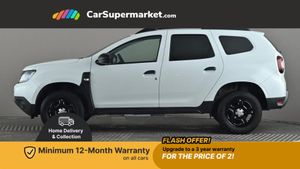Bluetooth connectivity,Eco mode,Electric power assisted steering,On board computer, odometer, trip computer, average fuel consumption, average speed, service indicator, outside temperature gauge,Rev counter,Speed limiter,Stop/start system,4x 20W FM/AM/DAB tuner with steering column mounted fingertip controls,Aux-in socket,USB connection for MP3 players,3 speed windscreen wipers,Black door handles,Black door mirrors,Black longitudinal roof bars,Black number plate surround,Black side sills,Black/satin chrome tailgate trim with Duster inscription in black background and lettering,Body coloured front and rear upper section bumpers,Chrome front grille,Daytime running lights,Double optic headlights,Dusk sensor,Electric front windows,Front and rear black lower section bumpers,Heated rear window,High level third rear brake light,LED automatically switched on - In main headlights,Manual rear windows,Manually adjustable door mirrors,Rear wash/wipe,Tinted windows,3 rear height adjustable headrests,4 speed heating and ventilation with air recirculation,60/40 split folding rear seat,Bainite cloth upholstery,Boot light,Gear shift indicator,Height adjustable driver seat,Height adjustable front headrests,Height adjustable steering wheel,Isofix points for child seats in both outer rear seats,Manual air conditioning,Matt black front door handles,Matt black rear door handles,Rear passenger reading light,3x3 point rear seatbelts,ABS and Emergency brake assist,ASR traction control with Electronic stability control,Child locks on rear doors,Door open visual and audible warning,Driver airbag,Driver and passenger seatbelt not fastened - visual and audible warning,Front passenger airbag deactivation,Front seatbelt pretensioners,Front side airbags,Height adjustable front seatbelts,Tyre pressure monitor,Remote central locking,Thatcham approved engine immobiliser,Dark carbon central console surround,Matt black central console fascia,Satin chrome air vent surround,Satin chrome instrument dial surrounds,16" Fidji steel wheels,Tyre inflation kit,Glacier White