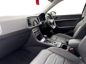 10" Digital cockpit,Cruise control system with speed limiter,E-call,Outside temperature gauge,Progressive power assisted steering,SEAT drive profile with driving experience button - Normal, Sport, Eco and Individual mode, gearshift, steering and throttle response,Self parking functionality (includes front and rear parking sensors),Start/stop system,Tailgate,Trip computer,wired and wireless full link smartphone integration,Wireless phone charger,Steering wheel mounted audio/phone controls,Black roof rails,Black side window trim,Body colour bumpers,Body coloured wheel arch surrounds,Chrome front grille frame,Dark tinted rear windows,Daytime running lights,Door mirrors with welcome light silhouette,Dynamic headlight range control with self adjusting whilst driving,Electric adjustable/heated/folding door mirrors,Front and rear electric windows,Full LED headlamps with lens and LED front fog lamps with cornering function,Illuminated aluminium front door sill,LED 3rd brake light,LED rear tail lights with dynamic indicators,Rear exhaust tailpipe,Rear fog lights,Rear side wing doors,Rear spoiler,Rear wash/wipe,Variable front intermittent wipers,12v socket in front,3 seat bench in 2nd row,60/40 split folding rear seat,Aluminium pedals,Dual zone climate control,Electric adjustable driver seat with memory function,Front and rear head restraints,Front centre armrest,Front seat back storage pockets,Heated front seats,Height adjustable passenger seats with lumbar adjustment,ISOFIX points in outer rear seats with top tether anchorage points,Leather sports steering wheel and gear knob,Leather upholstery with front comfort seats,Manual lumbar support on driver seat,Rear armrest and easy back seat release mechanism from boot,Single front passenger seat,Steering wheel mounted gearshift paddles,Convenience pack - Ateca,Interior lighting pack - Ateca,Navigation system pack with DAB - Ateca,Safety and driving pack with attention and drowsiness assist - Ateca,3x3 point rear seatbelts,ABS, Traction control system (TCS), Electronic stability control (ESC) and Electronic differential lock system (XDS),Airbags - Driver and front passenger airbag with deactivation, front side, two curtain and driver's knee airbags,Electric parking brake with auto hold function,Front and rear seatbelt reminder,Front assist with autonomous emergency braking,Hill hold control,Manual rear child locks,Single tone horn,Tiredness recognition system,Tyre pressure monitoring system,Alarm,Keyless entry,Locking wheel bolts,Remote central locking,Chrome interior detailing,19" Exclusive machined alloy wheels with decorative inserts 36/7 in cosmo grey