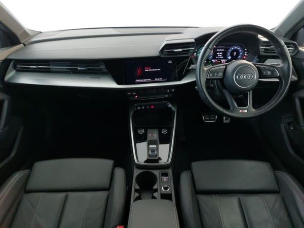 MMI Navigation Plus with high resolution 10.1" colour touch screen display, Lane departure warning system, Audi Virtual Cockpit - 10.25" digital and colour instrument cluster, Audi drive select (Auto, Comfort, Dynamic, Efficiency and Individual), Audi smartphone interface, Collision avoidance assistant, Voice control system with natural language interaction, DAB Digital radio, 6 passive loudspeakers, 2xUSB-C connection with data and charging functions, Auto dimming frameless rear view mirror, Electrically adjustable/heated/folding/auto dimming door mirrors with integrated LED indications + kerb view function for passenger side, Front electric windows, LED daytime running lights, LED headlights with LED rear lights and dynamic rear indicators, Privacy glass - dark tinted rear window, rear door and side windows, Rear electric windows, S line bumpers, 40/20/40 split folding rear seat bench with cupholder, Dual zone electronic climate control, Interior lighting - glove compartment light and right hand side, Twin leather upholstery with front sports seats S embossed logo, S line styling pack - A3 Sportback, Aluminium interior elements pack - A3 Sportback, Hill hold assist, Front side airbags with head airbags and interaction airbag, Electronic Stabilisation Control (ESC) including ABS, ASR and EDL, Pre-sense front with pedestrian and cyclist detection, Remote control central locking, Immobiliser, Anti theft alarm