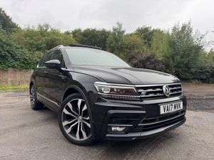 We are delighted to present this Volkswagen Tiguan 2.0 TDI R-Line 4Motion Euro 6 (s/s) 5dr, finished in Deep Black Pearl Effect with optional LED Mid headlights and a panoramic sunroof. The R-Line specification gives this SUV a bold and sporty edge, while 4Motion all-wheel drive ensures it is ready for all conditions.Powered by a strong and efficient 2.0 TDI diesel engine, this Tiguan combines excellent fuel economy with confident performance, perfectly suited to both urban driving and longer motorway journeys. The addition of sports suspension enhances handling, giving a dynamic driving experience without sacrificing comfort.The exterior design stands out with R-Line styling, LED headlights with headlight washers for optimum visibility, and distinctive alloy wheels, complemented by the deep gloss of the Pearl Effect paintwork. The panoramic sunroof floods the cabin with natural light, enhancing the sense of space.Inside, the Tiguan continues to impress with its combination of practicality, comfort, and technology. Heated seats provide comfort in colder months, while Apple CarPlay ensures seamless smartphone connectivity for navigation, music, and calls. The Race cloth with San Remo microfibre upholstery in Dark Magnetic Grey offers a premium and sporty feel to the cabin, further elevated by the R-Line trim finishes.With advanced features, striking looks, and Volkswagens reputation for build quality, this Tiguan R-Line offers a superb blend of performance, comfort, and practicality, making it an excellent choice for families and drivers seeking a versatile yet stylish SUV.-Panoramic SunRoof|AppleCarPlay-Buy online or visit our lovely modern showroom, either way, No Pressure Guaranteed & 5 Star Service