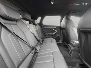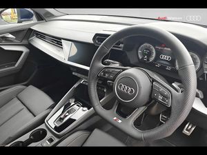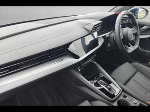 Adjustable speed limiter, Audi drive select, Audi smartphone interface with app store includes wireless Apple carplay, Android auto and Amazon alexa integration, Audi virtual cockpit plus - 12.3" full HD resolution dynamic digital instrument cluster, Automatic start/stop system with recuperation, Bluetooth interface, Camera based traffic sign recognition, Collision avoidance assistant, Cruise control, Distraction and Fatigue warning, e-Call (emergency call), Electromechanical power speed sensitive steering, Emergency assist, Lane departure warning system, MMI Navigation Plus with high resolution 10.1" colour touch screen display, Park Assist with parking system Plus, Service indicator, Trip computer, Voice control system with natural language interaction, 3 pin 10 amp domestic charging cable, CCS socket for DC charging, Charging cable for public charging, mode 3 (type 2), 32 A, Compact charging system, Industrial connector CEE 32 A, 230 V, length 1.6 m, Standard suspension, Type 2 socket for AC charging, Audi Phonebox light with wireless charging, Audi sound system - 10 loudspeakers including centre loudspeaker and subwoofer, DAB Digital radio, USB ports with charging function in the rear, Acoustic glass windscreen, All weather light, Aluminium window trim, Auto dimming frameless rear view mirror, Automatic dynamic range control, Body colour exterior mirrors, Chrome exhaust tailpipes, Dipped beam, main beam, position light and turning light, Electrically adjustable/heated/folding/auto dimming door mirrors with integrated LED indications + kerb view function for passenger side, Exterior model badging, Front and rear side air inlets in grained matt black with dark liquid chrome frame, Front electric windows, Front radiator grill in high gloss dark chrome, Heat insulating glass windscreen, Illuminated door sills with aluminium inserts at the front with S logo, Intersection light, LED 3rd brake light, LED brake lights, LED daytime running x3, LED headlights with LED rear lights and dynamic rear indicators, LED rear number plate lights, LED reverse light, LED tail lights, Light and rain sensors, Manoeuvring light, Motorway light, Privacy glass - dark tinted rear window, rear door and side windows, Rear diffuser and grill in grained matt black with inlay in dark liquid chrome, Rear electric windows, Rear side wing doors, Rear wiper, S line bumpers, S roof spoiler, Side S line emblems on front wings, Side sill trim in dark liquid chrome, Static cornering light, 12V socket and storage compartment in front centre console, 3 seat bench in 2nd row, 3 spoke flat bottomed leather multifunction sport steering wheel with gear shift paddles, 3-zone deluxe automatic air conditioning, 4 way electrically adjustable lumbar support for driver and front passenger, 40/20/40 split folding rear seat bench, Black cloth headlining, Black front and rear floor mats, Convenience auxiliary air conditioning, Front and rear centre armrest in artificial leather with contrasting stitching on armrests and instrument panel, Front and rear headrests, Heated front seats, Height and reach adjustable steering wheel, Manual boot compartment lid, Manually adjustable front seats, Rear centre armrest with cupholder, S badging on the steering wheel, Seat side bolsters, Single front passenger seat, Stainless steel pedals and front footrest in black, Twin leather upholstery with front sports seats S embossed logo, Aluminium interior elements pack - A3, Multi-coloured LED interior lighting package with Multi-coloured contour lighting of instrument panel - A3, 3x3 point rear seat belts, Acoustic vehicle alerting system, Driver and front passenger airbag with passenger airbag deactivation, Electronic Stabilisation Control (ESC) including ABS, ASR and EDL, First aid kit with warning triangle and 2 safety vests, Front side airbags with head airbags and interaction airbag, Hill hold assist, Pre-sense front with pedestrian and cyclist detection, Seatbelt monitoring, Tyre pressure loss indicator, Anti theft alarm, Anti-theft wheel bolts, Electronically operated child locks, Immobiliser, Remote central locking with safelock, Black dashboard, Inlay in dark aluminium spectrum, Tyre repair kit