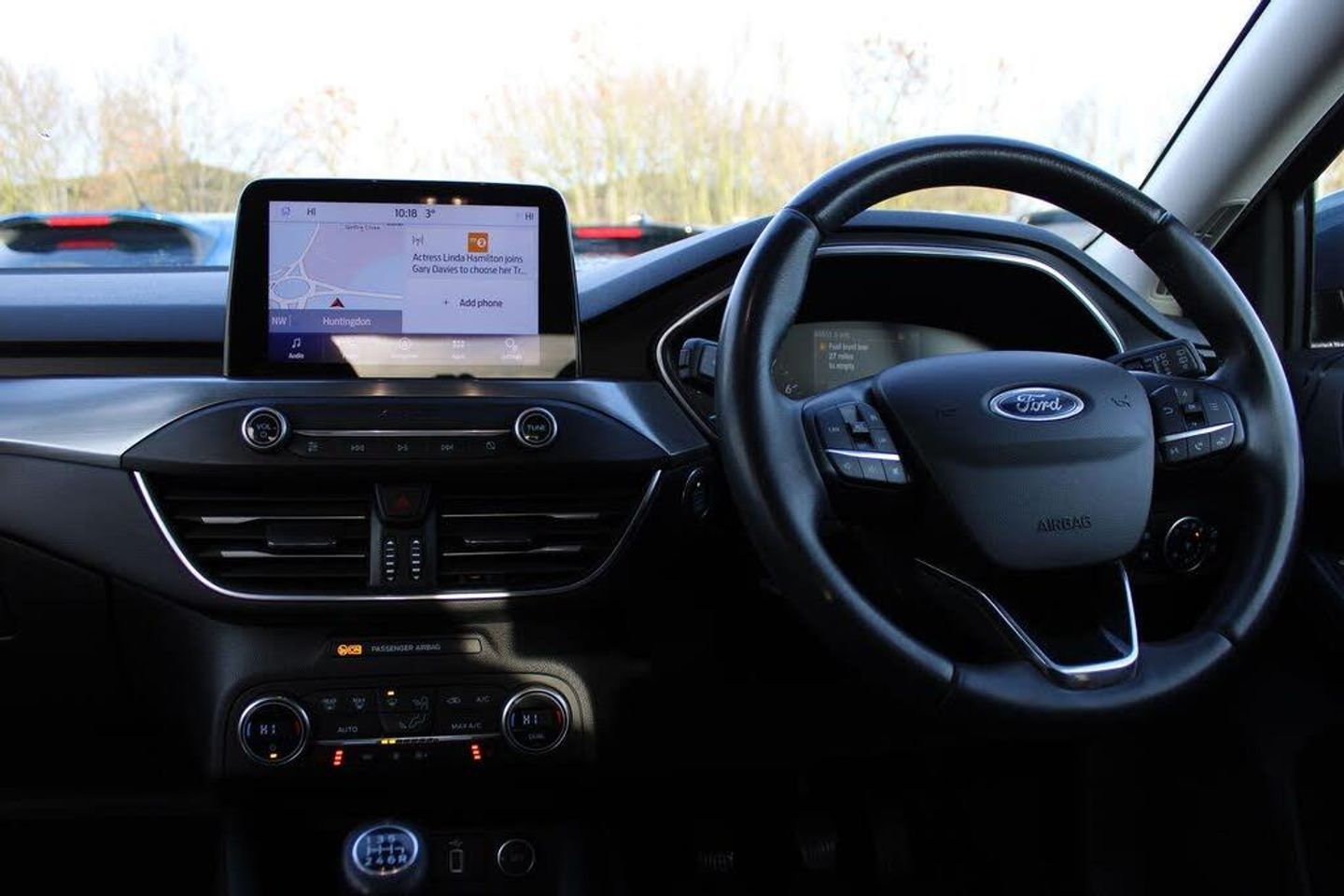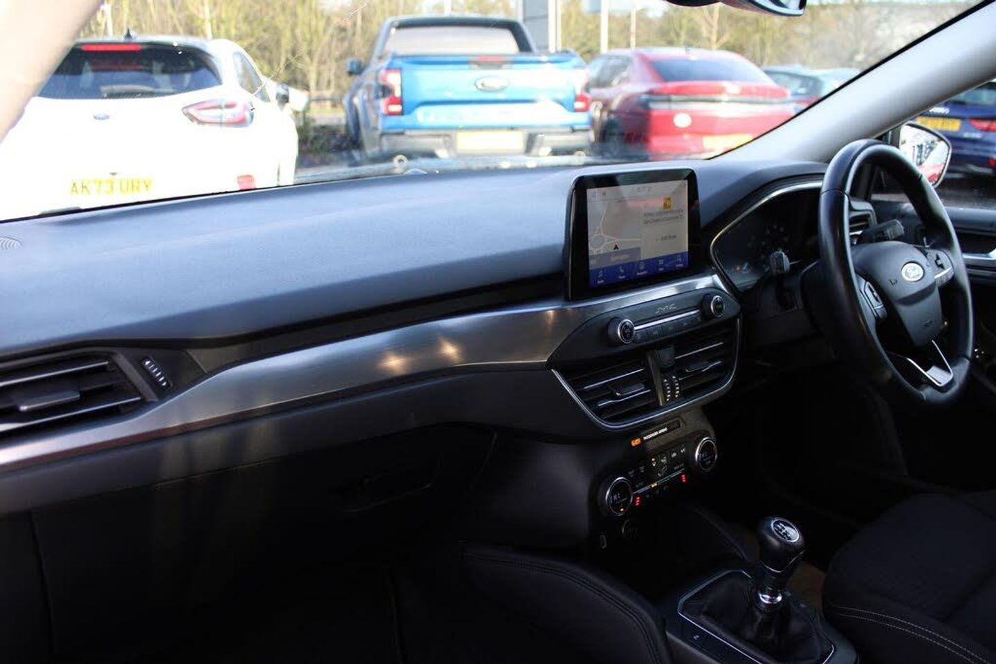 Bluetooth system, Digital clock, Easy fuel capless refuelling system, Eco mode, Ford pass connect, Ford SYNC 3 nav system with DAB radio, 8" colour touch screen, voice control, app link, Apple car play/Android auto and 4.2" TFT coloured cluster, Front and rear parking sensors, Intelligent speed assist, Lane keeping aid with lane departure warning, PAS, Selectable drive mode, Trip computer, 2 USB ports, Aux input, 'Quickclear' heated windscreen/heated washer jets, Auto dimming rear view mirror, Auto headlamps (on/off), Automatic rain sensing wipers, Body coloured bumpers, Body coloured door handles, Body coloured electrically operated and heated door mirrors with side indicators, Electrically operated front and rear windows with one touch opening and closing, Front fog lamps with cornering function, Front variable intermittent wipers with electric wash, Halogen reflector headlamps, Heated rear window, LED daytime running lamp, LED rear lamps, Power folding door mirrors with puddle lights, Tailgate wash/wipe, Upper grille with chrome surround and horizontal bars, 3 spoke leather trimmed steering wheel with integrated audio controls, 60/40 split back and cushion rear seats with 2 height adjustable headrests, Ambient lighting, Centre console with sliding front armrest, Cloth upholstery, Dual zone electronic air temperature control, Front/rear floor mats, Heated front seats, Height adjustable front headrests, Isofix child seat preparation, Leather gear knob, Reach + rake adjustable steering column, Rear centre headrest, Ford keyfree system with Keyless entry and keyless start, MyKey system, Remote central locking engine immobiliser, Thatcham category 1 alarm, Rear Privacy Glass