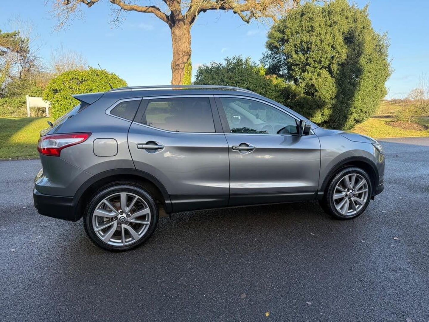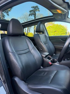 19in Alloy Wheels - 5-Spoke, 3 x 3-Point Rear Seatbelts with ELR, 5in High Definition Full Colour TFT Screen Combimeter, 6 Speakers, 60-40 Split Rear Folding Seats, AUX Socket for MP3 Player, Alarm, Automatic Folding Door Mirrors, Automatic Lights and Wipers, Black Honeycomb Front Grille, Bluetooth, Body-coloured Bumpers - Handles and Mirrors, CD Radio, Chrome Glass Surround, Cruise Control with Speed Limiter, Drive Computer, Driver Seat Height Adjustment, Driver-Passenger-Side and Curtain Airbags, Drivers Side One-touch and Anti-trap Window, Dual Zone Climate Control Air Conditioning, ESP ABS EBD and Brake Assist, Electric Speed-Sensitive Power Steering, Executive Pack, Front Centre Console and Armrest, Front Fog Lamps with Chrome Ring, Front Seat Belt Height Adjustment, Front Seat Belts with Load Limiter and Pretensioners, Front and Rear Electric Windows, Head Restraints - 3 Rear, Headlights - Automatic Levelling, Headlights - Bi-LED, Heat Pack, Height Adjustable Front Head Restraints, Hill Start Assist, ISOFIX Child Seat Anchoring Points, Immobiliser, Intelligent Key, Intelligent Park Assist, Interior Ambient Lighting, LED Signature Daytime Running Lights, Leather Gear Knob, Leather Steering Wheel, Luggage Board System, Nissan Chassis Controls, Puncture Repair Kit, Push Start-Stop Button, Rear Door Child Locks, Rear Privacy Glass, Rear Seat Armrest with 2 Cupholders, Remote Audio Control, Roof Rails - Satin Silver, Safety Shield, Seats - Drivers Lumbar Support, Seats - Passengers Height Adjustment, Selectable Steering - Normal or Sport, Smart Vision Pack, TPMS - Tyre Pressure Monitoring System, Tech Pack, Tilt and Telescopic Adjustable Steering Wheel, e-PKB - Electric Parking Brake