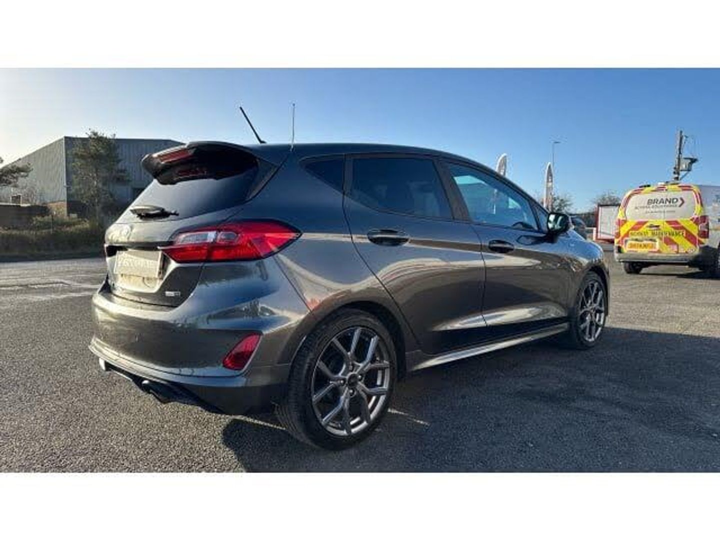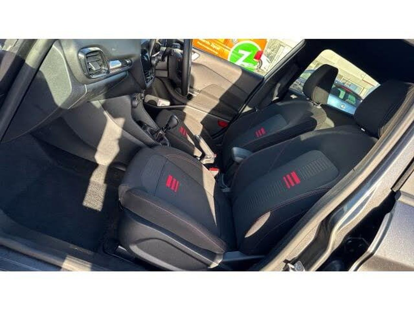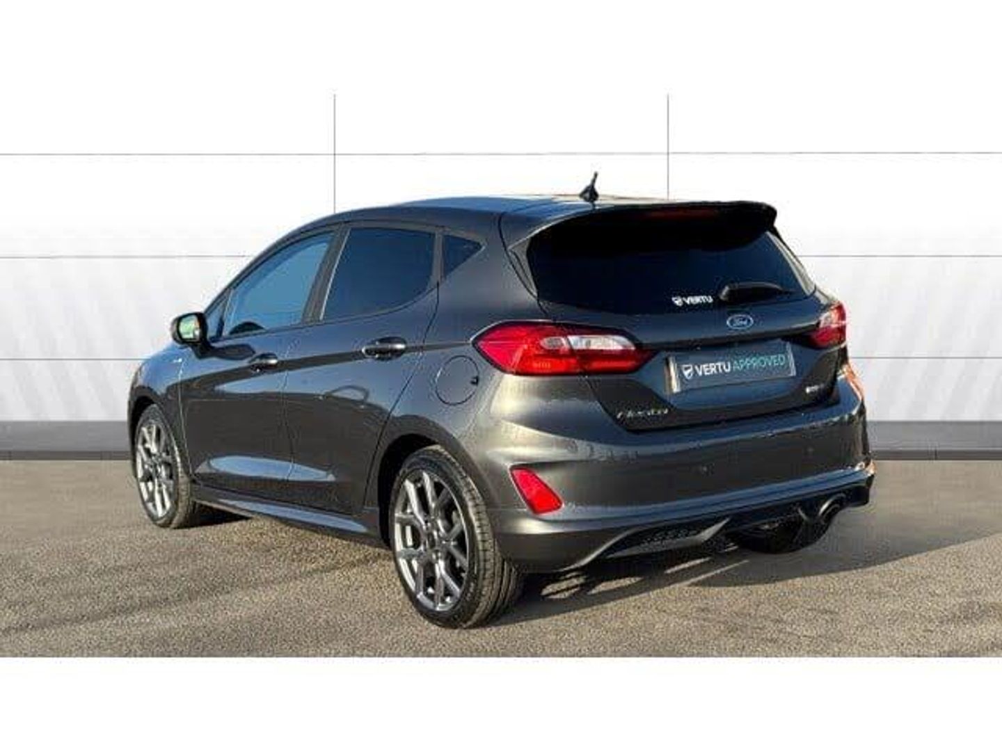 Boot carpet, Electric rear windows, ABS+EBA, Sports suspension, Bluetooth system, Electric power steering, Ford easy fuel, Trip computer, Body coloured electrically operated and heated door mirrors with side indicators, Steering wheel mounted controls, Body colour door handles, Cornering front fog lights, Manual air conditioning, Cloth upholstery, Footwell illumination, NCAP Pack - Fiesta, Driver and passenger airbags, Front seat and rear pockets, Thatcham Cat.1 alarm, 17" 5 spoke alloy wheels with rock metallic finish
