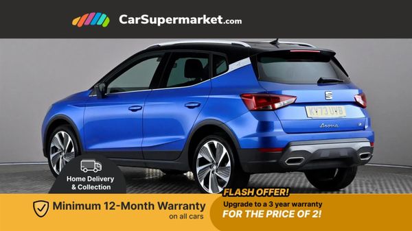 'Lights On' Reminder warning buzzer,10" Digital cockpit,Digital clock,E-call,Electric speed sensitive power steering,Full Link Smartphone Integration with Mirror Link, Apple Car Play, Google Android Auto with USB Type C cable for Apple and Android compatibility,Low fuel warning light,Outside temperature display,Rear parking sensor,RPM counter,Seat connect with safety, service, remote and online,SEAT Drive profile - Four different models normal-sport-eco-individual, steering response, throttle response,Trip computer,Wireless phone charger,9.2" colour touchscreen with navigation system, voice control and USB port (type c),Bluetooth interface for hands free and audio streaming,DAB digital radio and AM/FM radio,Steering wheel mounted audio controls,Anti theft roof antenna,Auto dimming interior rear view mirror,Automatic activation of hazard warning lights,Body coloured bumpers,Body coloured door handle inserts,Chrome roof rails and window surrounds,Dark tinted rear windows,Electric front/rear windows,Electrically adjustable, heated and folding door mirrors,Front fog lights with cornering function and rear fog light,FULL LED automatic headlights with dynamic headlight range control, coming and leaving home, LED daytime running lights,LED rear tail lights and licence plate lights,Protective side mouldings,Rain sensing wipers,Rear side wing doors,Rear spoiler,Rear window wash/wipe,Roof colour door mirrors,Third brake light,Twin exhaust pipe styling hidden exhaust pipe,Visible VIN plate,Windshield wiper with intermittent control and potentiometer,2 cupholders,3 seat bench in 2nd row,60/40 split folding rear seat,Aircare filter,Black interior roof,Double boot floor,Driver sunvisor with covered mirror + card holder,Dual zone climate control,Front comfort seats,Front courtesy light with front reading lights,Front seat back storage pockets,Gear shift indicator,Heated front seats,Height adjustable front seats,Height/reach adjustable steering column,Illuminated boot,Instrument lighting with brightness control,Interior ambient lighting,Interior light in footwell, central console and door panel,ISOFIX points in outer rear seats with top tether anchorage points,Microsuede cloth upholstery,Passenger sunvisor with vanity mirror,Perforated flat bottomed leather steering wheel/gear knob/handbrake with red stitching and FR logo,Single front passenger seat,Two front and three rear height adjustable headrests,Interior chrome pack - Arona,3 point seatbelts on all rear seats,ABS,Active front headrests,Child locks on rear doors,Driver and front passenger airbags with front passenger airbag de activation, front side and curtain airbags,Electronic stability control,Emergency Brake Assist (EBA) and front assist,Front and rear seatbelt reminder,Hill hold control,Multi-Collision braking,Tiredness recognition system,Traction control,Tyre pressure monitoring system,Alarm with back-up horn,Electronic engine immobiliser,Locking wheel bolts,Remote central locking + deadlocks,Tow away protection,Titan black dashboard,18" Performance Cosmo grey matt alloy wheels
