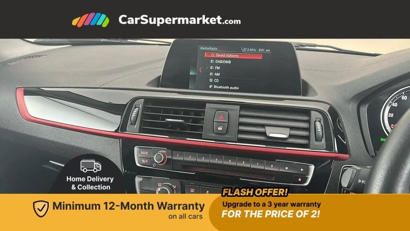 Digital Radio, Satellite Navigation, Bluetooth, Sport Leather Steering Wheel;This 2018 BMW 1 Series 118i Sport boasts exceptionally low mileage for its age, having covered just 39,421 miles. This particular example is a Euro 6 compliant model, ensuring efficient emissions. Its MOT is valid until November 2026, offering peace of mind for the coming years. The vehicle comes with a clear vehicle history check with the last service completed on 28th November 2025 at 39,421 miles.