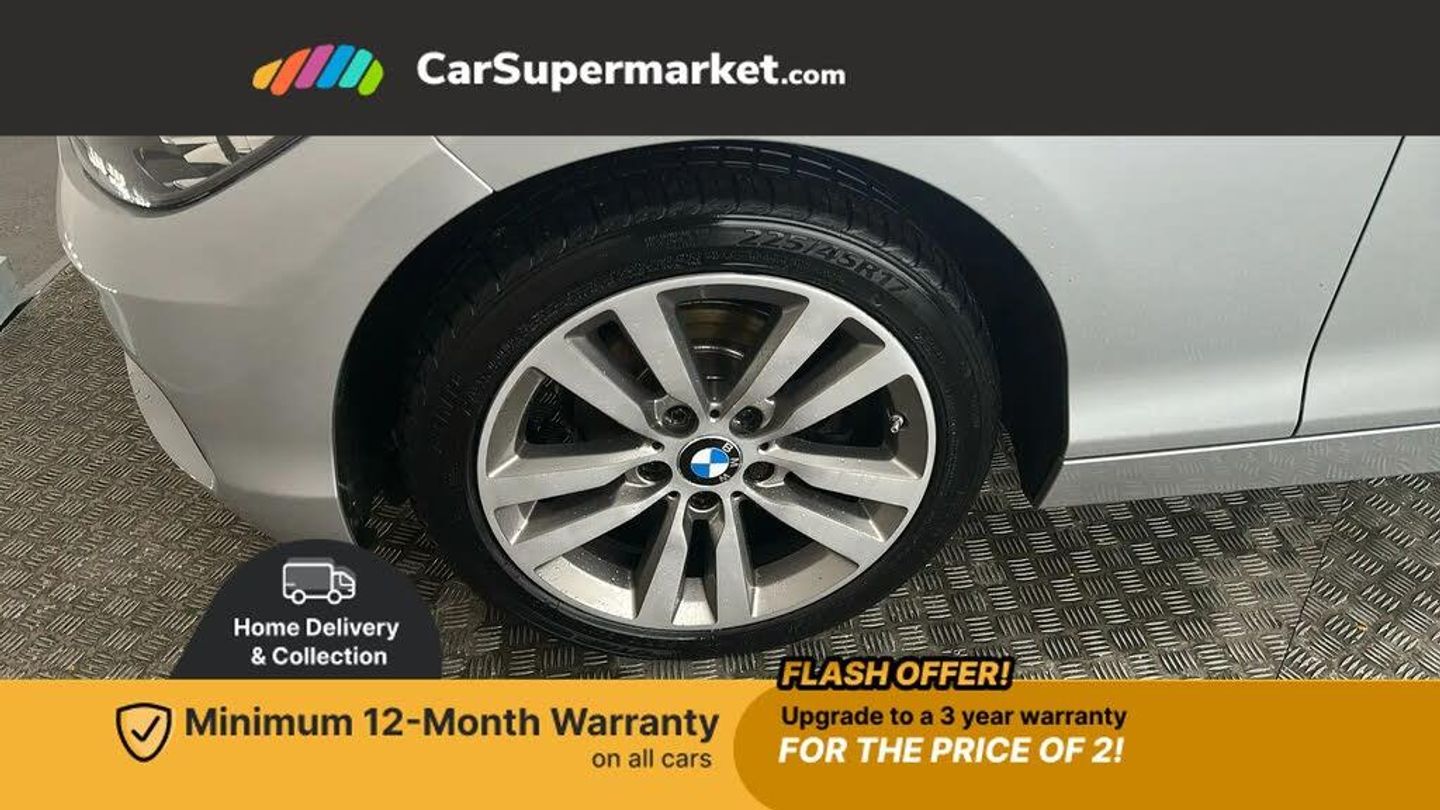 'Lights On' Reminder warning buzzer,BMW Online services,BMW Teleservices,Brake force display,Engine start/stop button,Oil level indicator,On board computer,On board diagnostics,Outside temperature display,Service interval indicator,Speed limiter,Drive Performance Control,Auxiliary point for auxiliary devices,BMW professional radio with CD player,DAB Digital radio,Body colour bumpers,Body colour door handles,Dark chrome exhaust tailpipe,Daytime running lights,Electric front windows + one touch + anti-pinch,Electric rear windows,Electrically adjustable door mirrors,Follow me home headlights,Green tinted heat insulating glass,Heated door mirrors,Heated windscreen washer jets,High gloss black kidney grille,Rain sensor including auto headlights activation,Rear wash/wipe,Welcome lighting,12V power socket in centre console,12V power socket in passenger footwell,4 grab handles,60/40 split rear seats,Door armrests,Folding rear seat head rests,Front door sill finishers in Sport designation,Front folding/sliding centre armrest with storage,Front head restraints,Front sports seats with electric side bolster adjustment,Front/rear courtesy lights with soft on/off dimming,Glovebox,Isofix rear child seat preparation,Leather gear knob and handbrake grip,Load restraint lashing eyes,Multifunction steering wheel with audio controls,Reach + rake adjustable steering column,Storage compartments in doors,ABS/EBD,Automatic Stability Control (ASC),BMW emergency call,Child locks on rear doors,Cornering brake control (CBC),Crash sensor,Driver/Passenger airbags (Impact dependent),Drivers knee airbag,DSC+,Dynamic brake control,Dynamic Traction Control - DTC,Front passenger airbag deactivation,Front side airbags,Hill start assist,ITS head airbags for front/rear,Pyrotechnically pre-tensioned front seatbelts,Seat belt force limiter,Three 3 point rear seatbelts,Tyre pressure monitor,Warning triangle and first aid kit,Automatic drive away locking facility,Electronic immobiliser,Remote central locking,Thatcham Cat.1 alarm,Run flat tyres,Glacier Silver,Sport Leather Steering Wheel - Black Stitching,Corner Cloth - Anthracite with Grey Highlight with Black Interior