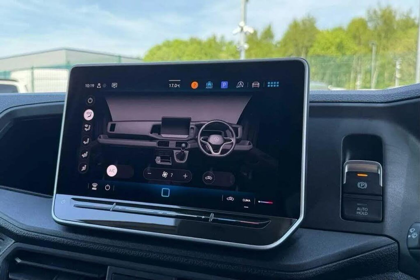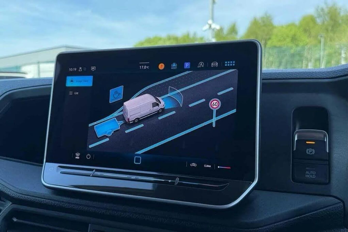 Candy White Solid Paint,Rear view camera,Comfort plus single driver's seat,Rear step in rear bumper full,Wing mirrors: electrically heated and adjustable,Anti-theft alarm system - with interior monitoring,backup horn and tow-away protection,Load floor cover - wooden,Electronic cruise control system,Speed limiter and predictive speed limiter,Wired & Wireless App-Connect,Composition colour radio,10" touch colour display,Electric windows,Body colour roof,Integral step in front bumper,Driver seatbelt warning light,Indicators in front door mirrors,ABS,Automatic post collision braking system,EBA,EBD,EDL,ESP,HBA,Parking brake - hill hold control,TCS,Cruise control with speed limiter,Front assist including city emergency braking,3 point inertia reel belt on all seats,Automatic hazard light with emergency braking,Crosswind assist,Height adjustable seatbelts for outer cab seats,Driver alert system,Locking fuel cap,Lights on warning buzzer,Rev counter,Service indicator,Air recirculation system,Charcoal filter,Ashtray,Centre console storage tray,CFCU preparation,Document holder on centre console,Drinks holders,Electromechanical Servotronic steering,Grab handles on rear entry pillars,Height and reach adjustable steering wheel,Illuminated glove compartment with lockable lid,Storage compartments in doors and in step,right,Storage tray on dashboard,Two 12V outlets in the cab (in the dashboard),Interior light,including 2 reading lights,switchable by door,Without rear side trim panel passenger load compartment,Fully adjustable suspension type driver seat,Height adjustable head restraints,1 rigid key,Engine immobiliser,Remote central/dead locking