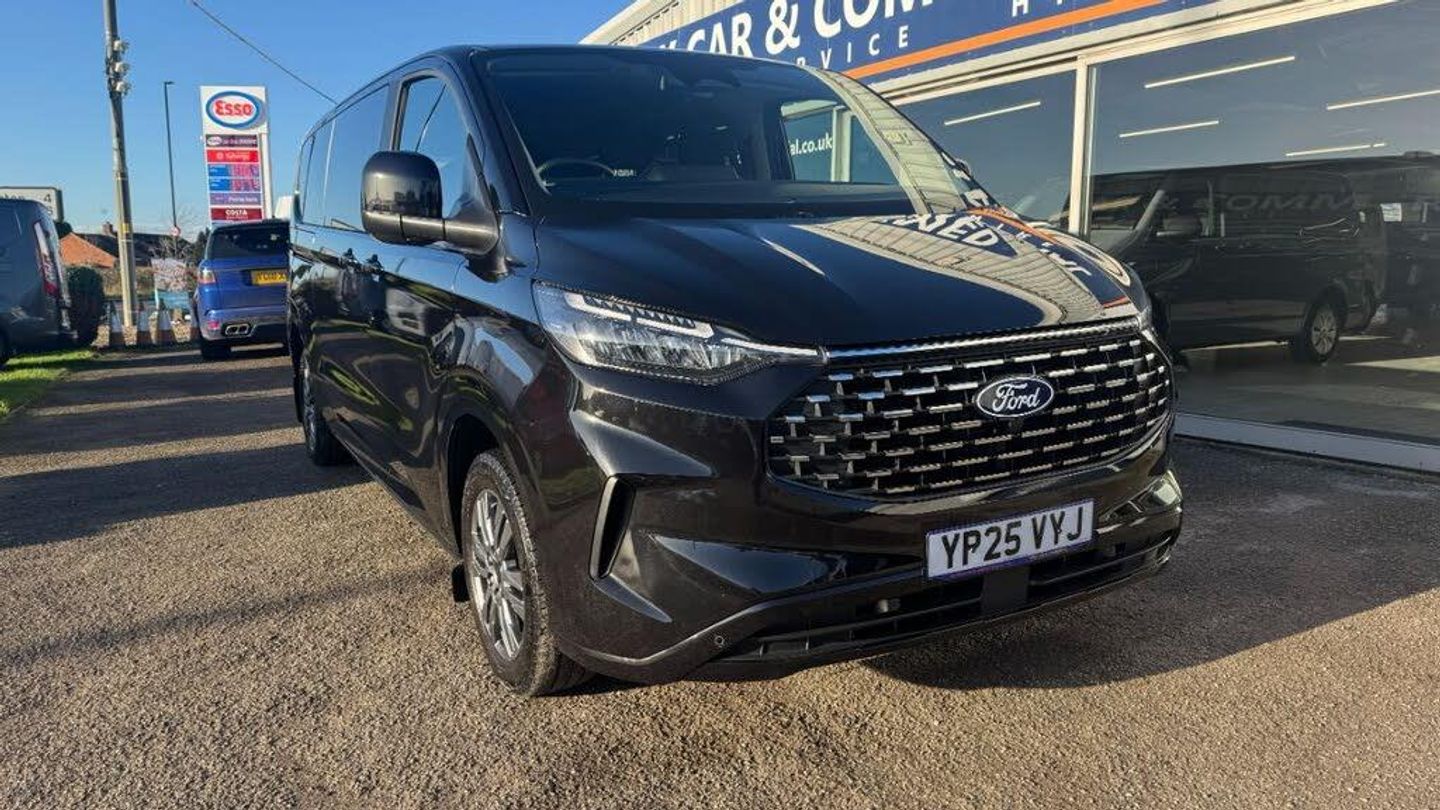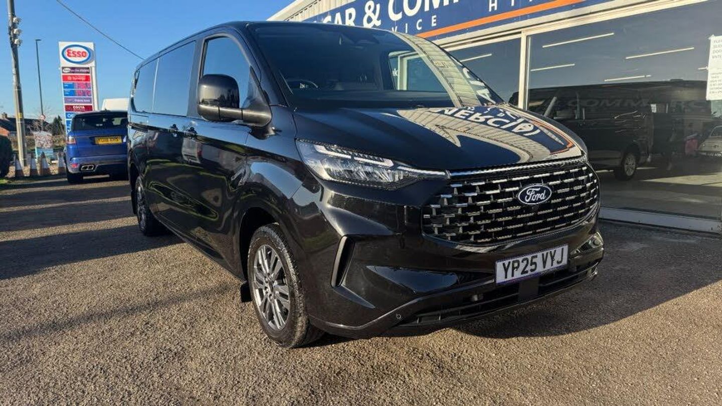 2025 (25). LWB TITANIUM LUXE AUTO. ONLY 8 MONTHS OLD GREAT SAVING ON NEW. BALANCE OF FORD MANUFACTURE'S WARRANTY UNTIL APRIL 2028 . Part exchange welcome. All major Credit / Debit cards accepted. Low rate finance arranged. Nationwide delivery . Additional detailed pictures and personalised videos are also available on request.This 2025 Ford Tourneo Custom boasts a full service history and has had only one owner, offering excellent peace of mind. This Titanium Luxe derivative features a powerful yet efficient 2.0 litre 134 bhp EcoBlue diesel engine, meeting Euro 6 emission standards. The automatic transmission ensures a smooth driving experience, complemented by a fixed panoramic sunroof and a premium branded sound system, all part of the Tourneo Luxe Pack. For added comfort, the Titanium Complete Single Passenger Seat is heated, and the vehicle benefits from automatic air conditioning.The Titanium Luxe trim level signifies a superior offering, enhanced by features like LED headlamps with auto high beam and a comprehensive Navigation Pack. This pack includes Blind Spot Assistance and Adaptive Cruise Control, demonstrating how this Tourneo Custom surpasses others in its class by providing advanced safety and convenience. With 28 months of warranty remaining, this well maintained vehicle is ready for its next adventure.Spec & Features13in Touchscreen17in Alloy Wheels - Twin-Spoke in Carbonised Grey2 Remote Keys5G Embedded ModemABS - Anti-lock Braking SystemAirbag -