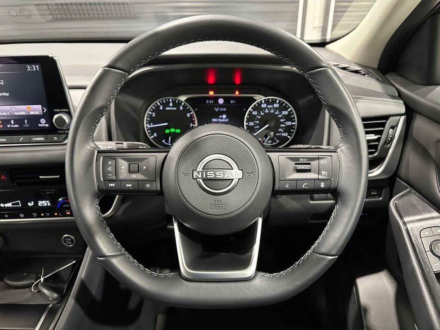 12v Power Sockets in Dash and Luggage Space, 17in Alloy Wheels, 3 Rear Headrests, 3 x 3-Point Rear Seatbelts, 6 Speakers, 60-40 Split Rear Folding Seats, 7in High Definition Full Colour TFT Screen Combimeter, ABS with EBD and Brake Assist, AM-FM Audio System with DAB, Active Brake Limited Slip, Auto Dimming Rear View Mirror, Auto Hold Function, Auto Rear Wiper When Reversing, Automatic Dual Zone Climate Control with Pollen Filter, Blind Spot Warning, Bluetooth with Audio Streaming, Body Coloured Handles, Body Coloured Mirror Caps, Body Side Moulding, Chrome Interior Door Handles, Chrome Side Window Finisher, Curtain Airbags, Door Mirror - Electrically Adjustable - Heated - Auto Folding with LED Turn Indicator, Drive Modes - Sport-Normal-Eco, Driver and Passenger Airbags, Driver and Passenger Sun Visor with Illuminated Vanity Mirror, Driver-Passenger and Rear Seatbelt Reminder, Electric Parking Brake, Electric Speed-Sensitive Power Steering, Engine Immobiliser, Engine Start Button, Follow Me Home Headlights, Front Centre Console and Armrest, Front Cupholders x2, Front Door with Bottle Holders, Front Seat Belts with Load Limiter and Pretensioners, Front Seatbelt Height Adjustment, Front USB Connections - Type A and Type C, Headlights - High Beam Assist, Headlights - LED, Height Adjustable Driver Seat, Height Adjustable Front Headrests, Hill Start Assist, Intelligent Auto Headlight, Intelligent Blind Spot Intervention, Intelligent Cruise Control, Intelligent Driver Alertness, Intelligent Forward Collision Warning, Intelligent Front Emergency Braking with Pedestrian Recognition and Cyclist Recognition and Junction Assist, Intelligent Key, Intelligent Lane Intervention, Intelligent Rear Automatic Braking, LED Daytime Running Lights, LED Rear Lights, Lane Departure Prevention, Lane Departure Warning, Leather Shift Knob, Maximum Speed Limiter, Multifunctional Steering Wheel, Nissan Connect 8in Touchscreen Infotainment System, One Touch Front and Rear Electric Windows with Remote Opening-Closing, Partially Body Coloured Bumpers, Passenger Seat Back Pockets, Puncture Repair Kit, Rain Sensing Wipers, Rear Cross Traffic Alert, Rear Door Child Locks, Rear Door with Bottle Holders, Rear Parking Sensors, Rear Reversing Light - Bulb, Rear Roof Spoiler, Rear Seat Armrest with 2 Cupholders, Rear View Camera, Remote Central Locking with Deadlocking, Seats - Passengers Height Adjustment, Shark Fin Antenna, Splash Free Wipers, TPMS - Tyre Pressure Monitoring System, Thatcham Alarm System, Three Blink Turn Signal, Tilt and Telescopic Adjustable Steering Wheel, Traffic Sign Recognition, Trip Computer, Two Rear ISOFIX Child Seat Anchorage Point with Top Tether, VDC - Vehicle Dynamic Control, 4 Folding Assist Grip Plus 2 Coat Hooks Rear, Android Auto, Capless Fuel Filler Cap, Door Handle with Button, Driver Seat Back Pockets, Dusk Sensor, E-Call, Electric Adjustable Lumbar Support on Driver Seat, Emergency Stop Signal - Auto Hazard, FR - Front Reading and RR - Rear Reading and Luggage Room Lighting, Glove Box with Light, Hard Trunk Cover, Leather Steering Wheel, One Touch Windows x4, Rear Bumper with Silver Insert, Steering Wheel with Switches, Sunglasses Holder, One Remote Key Fob