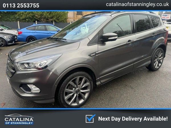 Ford Kuga 2.0 TDCi ST-Line X – Panoramic Roof | Apple CarPlay | Great History Diesel | Manual | Euro 6 | 150 PS | 64,670 Miles | MOT Until 10-07-2026 This Ford Kuga 2.0 TDCi ST-Line X is a stylish, high-spec SUV that blends performance, practicality, and premium features. With just two former keepers and 64,670 miles from new, it's a superbly maintained example offering excellent value and comfort. Powered by the reliable 2.0-litre TDCi diesel engine producing 150 PS, this Kuga delivers smooth power and efficiency, ideal for both motorway cruising and family use. It has been well maintained with service history up to 63k miles, giving peace of mind to the next owner. Finished in grey with a dark interior, this ST-Line X specification includes impressive features such as sat nav, Bluetooth, Apple CarPlay, alloy wheels, and a panoramic roof, creating a refined and connected driving experience. A fantastic combination of sporty design, practicality, and technology — this Kuga is a standout family SUV that's ready to drive away. 2019 FORD KUGA 2.0 TDCi ST-Line X SUV 5dr is offered to you for sale in Pudsey, Leeds, finished in grey FORD KUGA 2.0 TDCi ST-Line X SUV 5dr is one of many handpicked used cars that used car dealer, Catalina of Stanningley, Pudsey, Leeds have available for sale.
