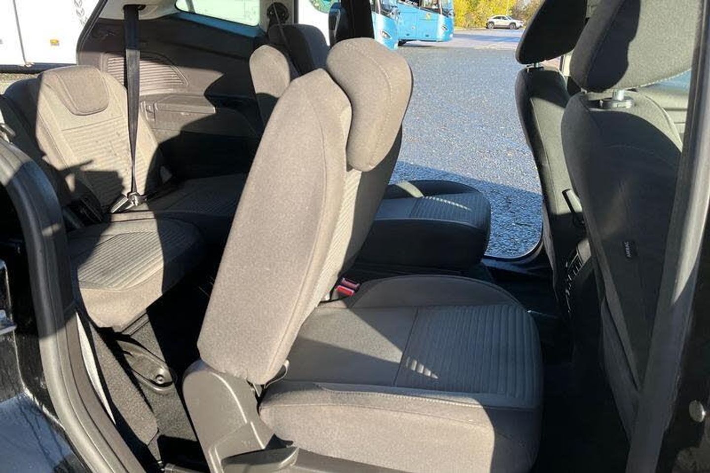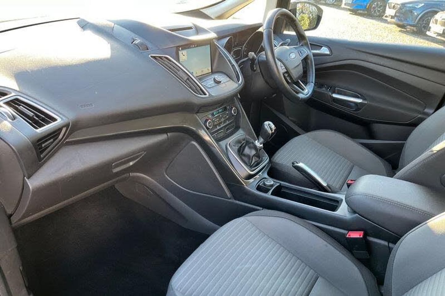'Ford Power' starter button, Driver's information system, Easy fuel capless refuelling system, Electric power steering, Trip computer, Auto dimming rear view mirror, Automatic headlights, Body colour bumpers with black rubbing strip, Body colour door handles, Body colour door mirrors with integral indicators, Chrome finish on upper door line, Dual sliding side load doors, Electric front windows, Electric rear windows, Front and rear power windows with global closing, Front fog lights with chrome surrounds, Halogen headlamps with LED Day Running Lights, Heated door mirrors, Intermittent rear wash/wipe, Power fold mirrors, Quickclear heated windscreen, Rain sensing windscreen wipers, 12V accessory sockets - front and rear, 3 spoke steering wheel, Ambient interior lighting, Auxiliary power socket, Centre armrest with storage box, Child observation mirror, Cloth upholstery, Courtesy light in luggage compartment, Driver's seat manual height adjust, Driver/passenger lumbar adjustment, Dual zone electronic automatic temperature control, Footwell illumination, Front/rear courtesy lights, Front/rear reading lights, Fully adjustable front headrests, ISOFIX child safety seat attachments, Leather gearknob, Passenger seat height adjuster, Premium centre console with armrest, Rake/reach adjustable steering wheel, Satin chrome interior door handles, Sports style front seats, Three height adjustable rear head restraints, Tonneau cover, Versatile split folding rear seat - 40/20/40, 7 three point seatbelts, ABS + traction control, Driver and passenger airbags, Driver and passenger side airbags, Electronic brake force distribution, Emergency brake assist, ESP, Fasten seatbelt reminder, Front and rear curtain airbags, Height adjustable front seatbelts, Hill start assist, Intelligent Protection System (IPS), Power operated rear door child locks, Tyre pressure monitoring system